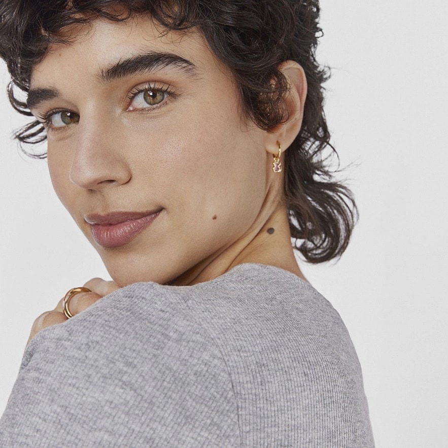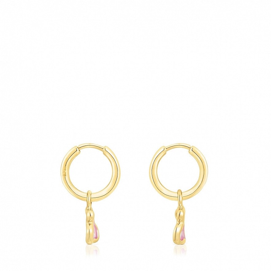 Серьги-кольца TOUS Gregal из серебра 925 пробы с покрытием Vermeil и с мотивом кулона-мишки с розовой эмалью внутри и силуэтом из серебра 925 пробы с покрытием Vermeil . Диаметр кольца: 8мм. Размер мотива: 7х5,9 мм.