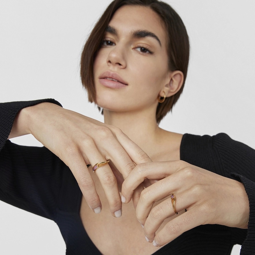 Кольцо TOUS Gregal из серебра 925 пробы с покрытием Vermeil с лиловой и оранжевой эмалью. Толщина кольца: 1,6 мм.
