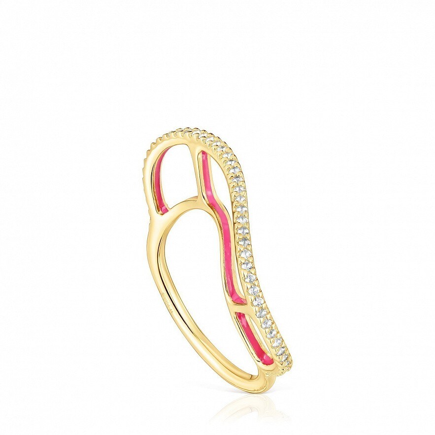 Кольцо TOUS Gregal из серебра 925 пробы с покрытием Vermeil с гранеными топазами круглой огранки 1 мм и эмалью цвета фуксии внутри. Толщина кольца: 1,7мм.