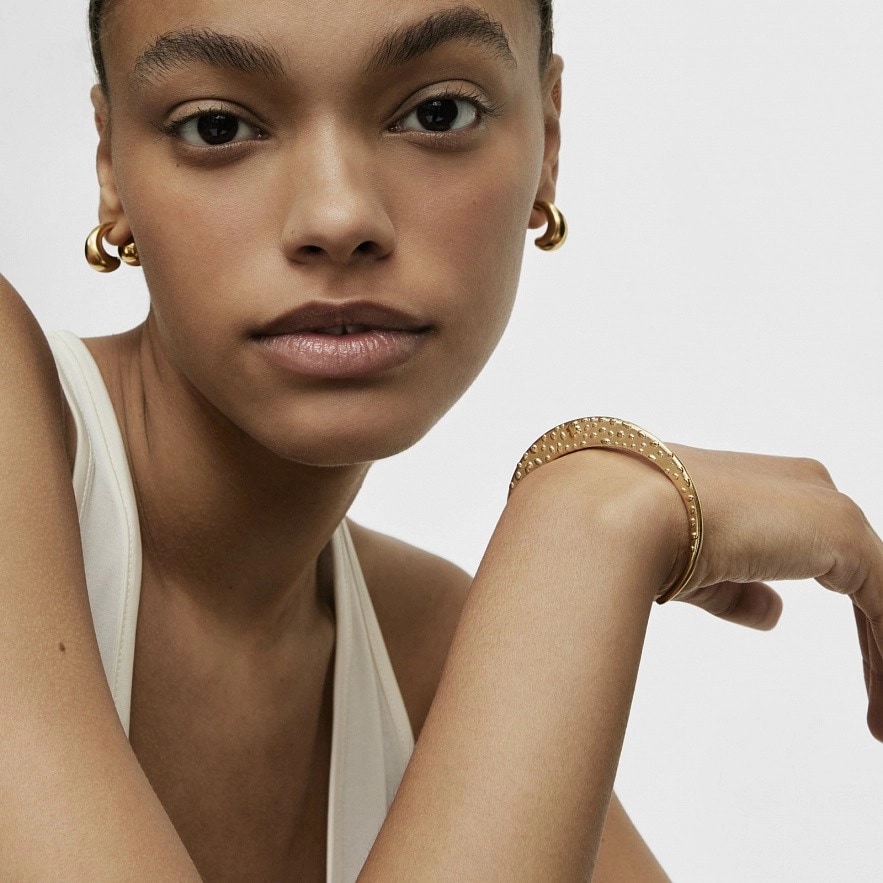 Браслет TOUS Dybe из серебра 925 пробы с покрытием Vermeil выпуклой формы. Ширина браслета: от 3 до 7,4 мм. Толщина браслета: от 3 до 8,8 мм. Диаметр: 25 мм.