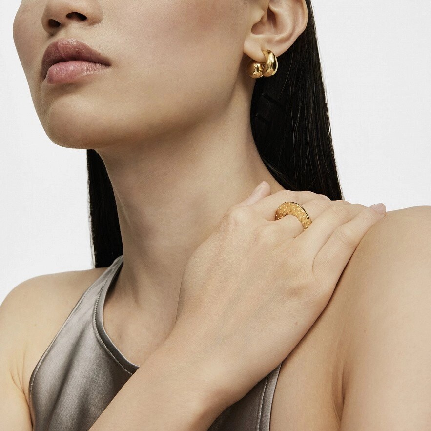 Кольцо TOUS Dybe из серебра 925 пробы с покрытием Vermeil выпуклой формы. Ширина кольца: от 2,4 до 7,4 мм, толщина: от 2,25 до 8 мм.