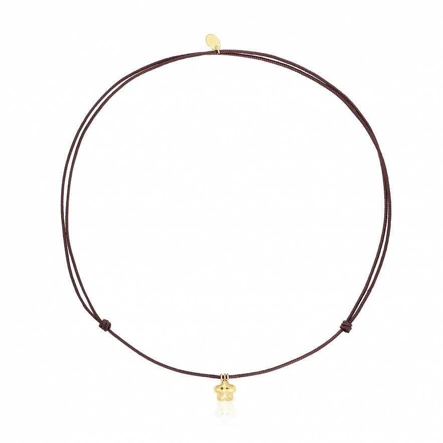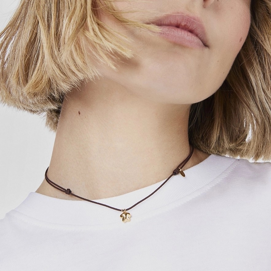 TOUS Balloon колье с цветочным мотивом из 18-каратного золота и коричневого шнура. Размер мотива: 8 х 8,24 мм. Максимальная длина ожерелья: 65см. Регулируемая застежка шнура.