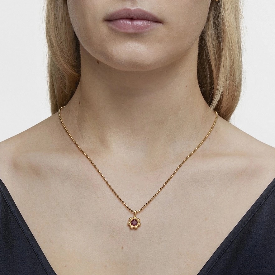 Кулон TOUS Sugar Party из серебра 925 пробы с покрытием Vermeil с родолитом в центре. Размер драгоценного камня: 5 мм. Размер кулона: 11,3мм. Этот товар не включает цепочку. Кулон изготовлен из стерлингового серебра 925 пробы, покрытого золотом 18 карат толщиной от 3 до 5 микрон. Это качество гарантирует большую долговечность драгоценности.