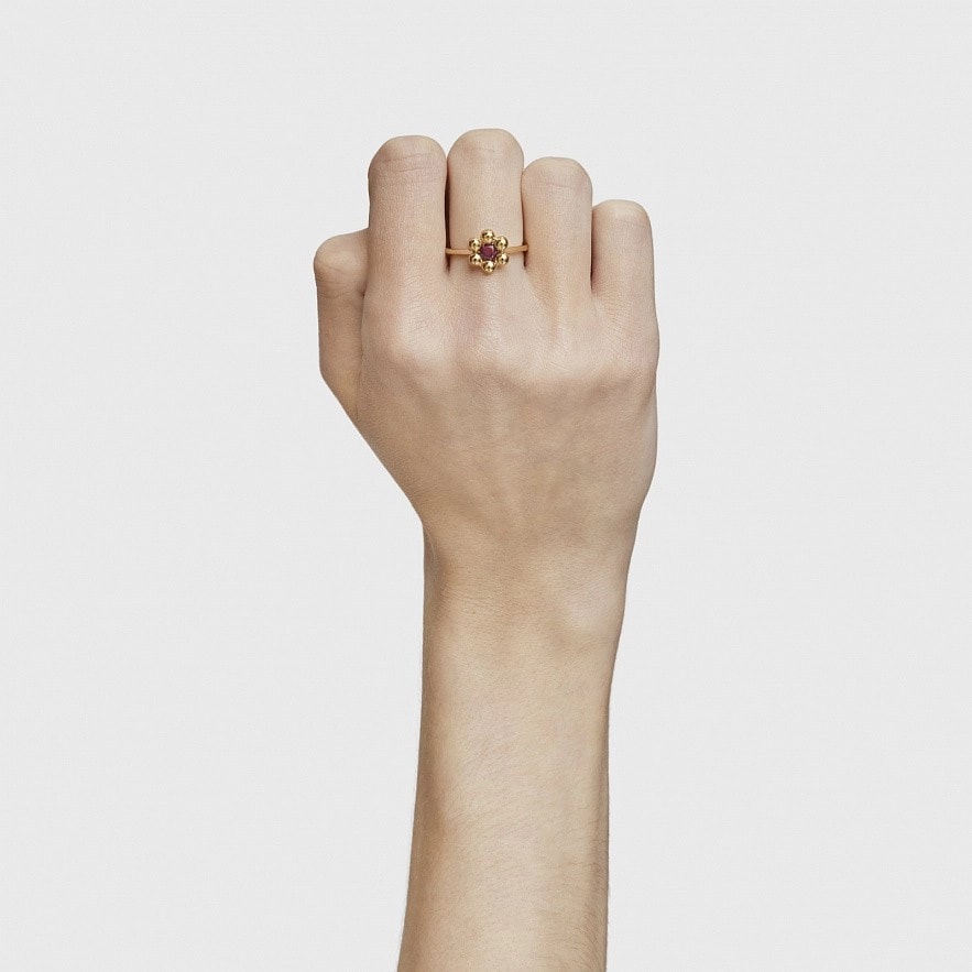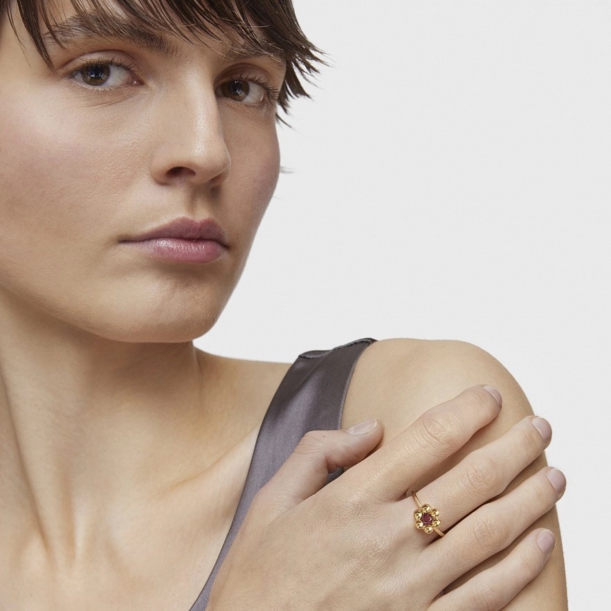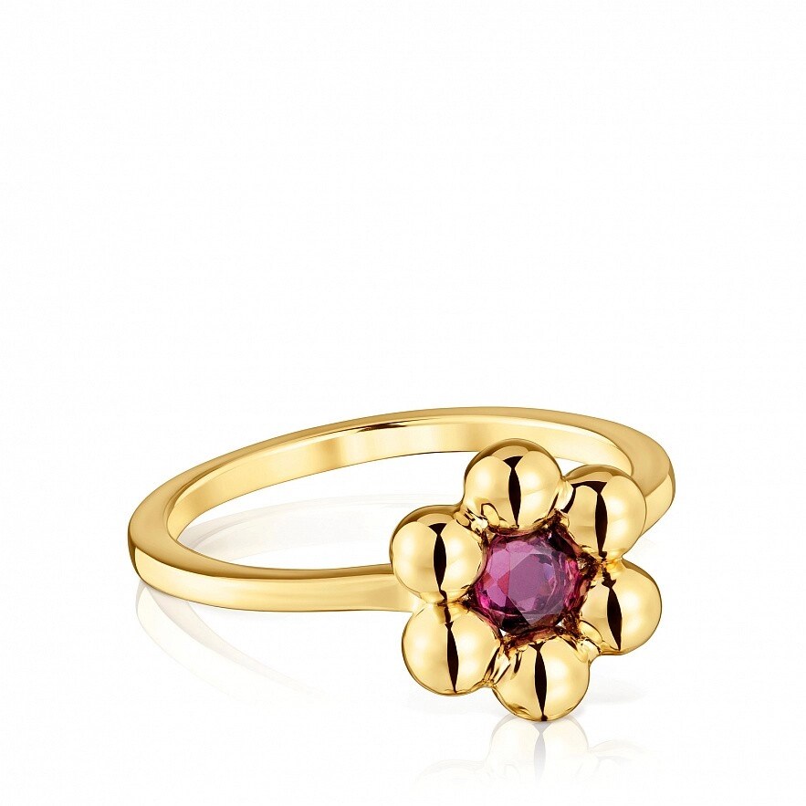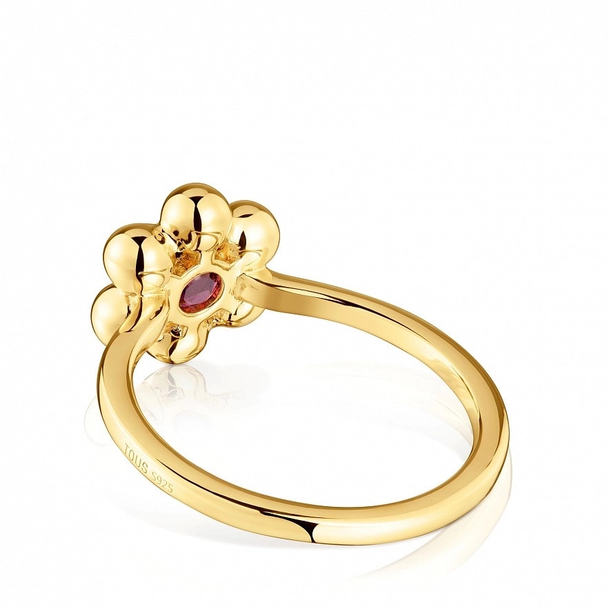 Кольцо TOUS Sugar Party из серебра 925 пробы с покрытием Vermeil с родолитом в центре. Размер драгоценного камня: 4мм. Толщина кольца: 1,5мм. Кольцо изготовлено из стерлингового серебра 925 пробы, покрытого золотом 18 карат толщиной от 3 до 5 микрон. Это качество гарантирует большую долговечность драгоценности.