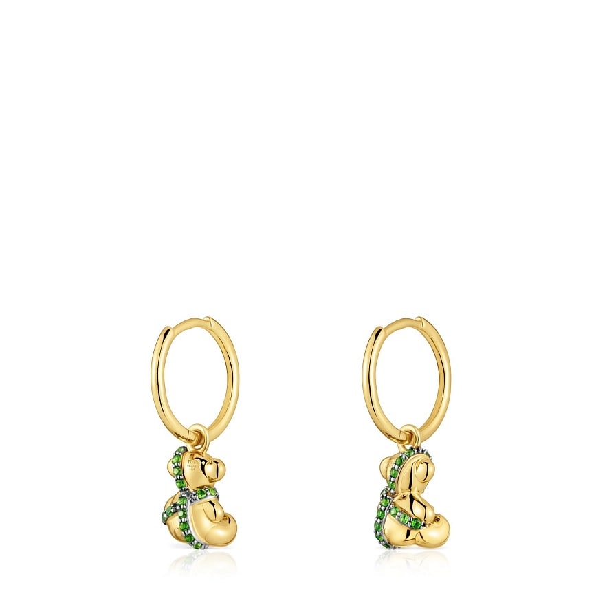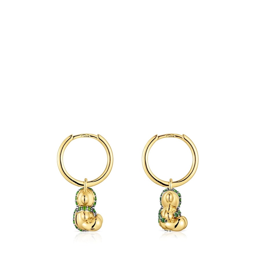 Серьги TOUS Lligat из серебра 925 пробы с покрытием Vermeil и подвешенным мишкой с круглым мотивом из хромового диопсида. Размер драгоценного камня: 0,8 мм. Размер мотива: 9х7,2 мм.