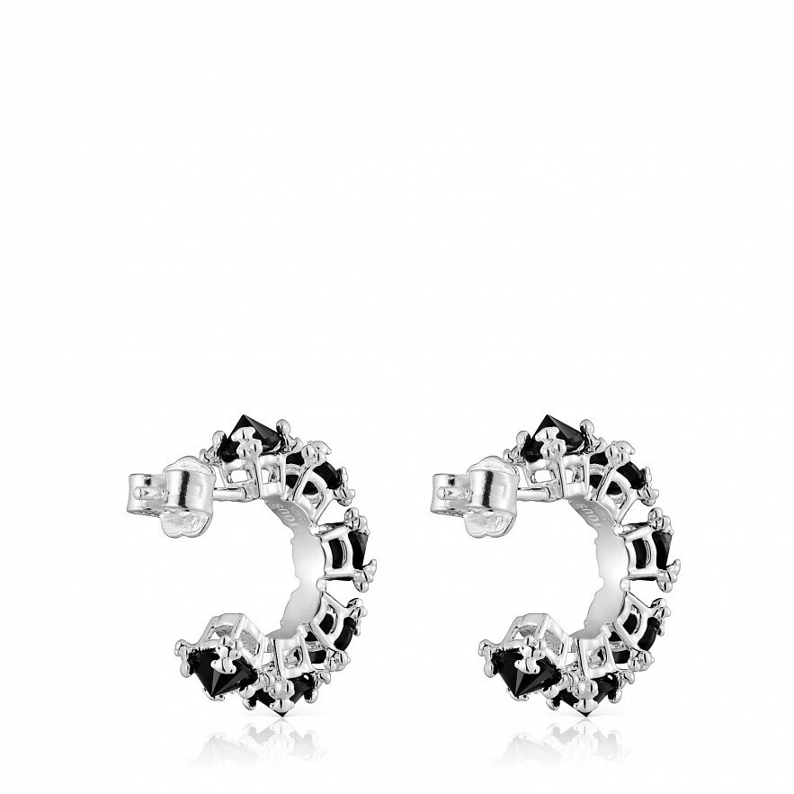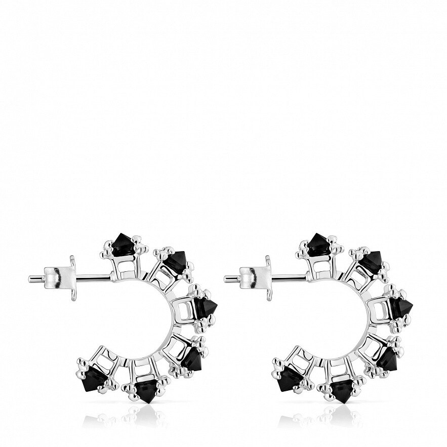 Серьги-кольца TOUS Color Pills из серебра 925 пробы и граненого круглого оникса. Размер драгоценного камня: 4 мм. Внутренний диаметр кулона: 9 мм. Застежка-пусет.