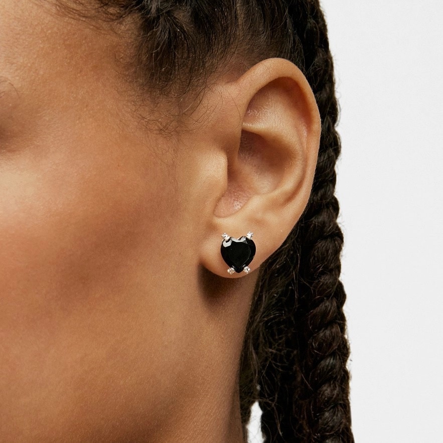 Серьги TOUS Color Pills из серебра 925 пробы и граненого оникса в форме сердца. Размер драгоценного камня: 10,2х9,8 мм. Застежка-пусет.