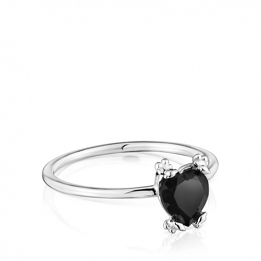 Кольцо TOUS Color Pills из серебра 925 пробы и граненого оникса в форме сердца. Размер драгоценного камня: 6,2х5,8 мм. Размер мишки: 2,4 мм. Высота мотива: 4,8мм. Толщина кольца: 1,25 мм.
