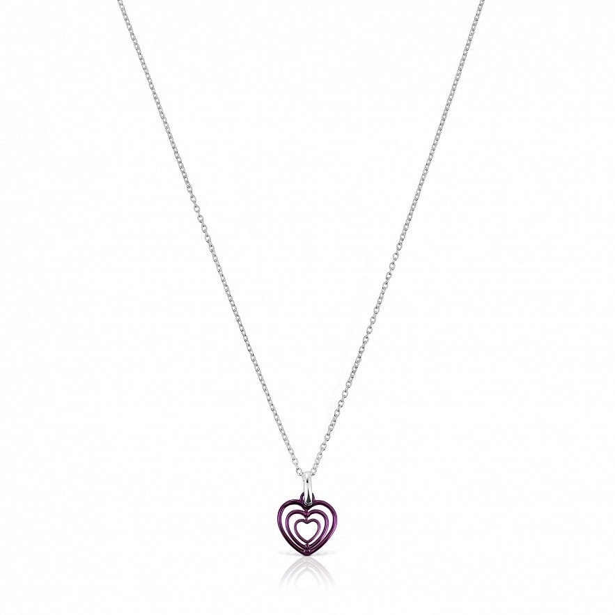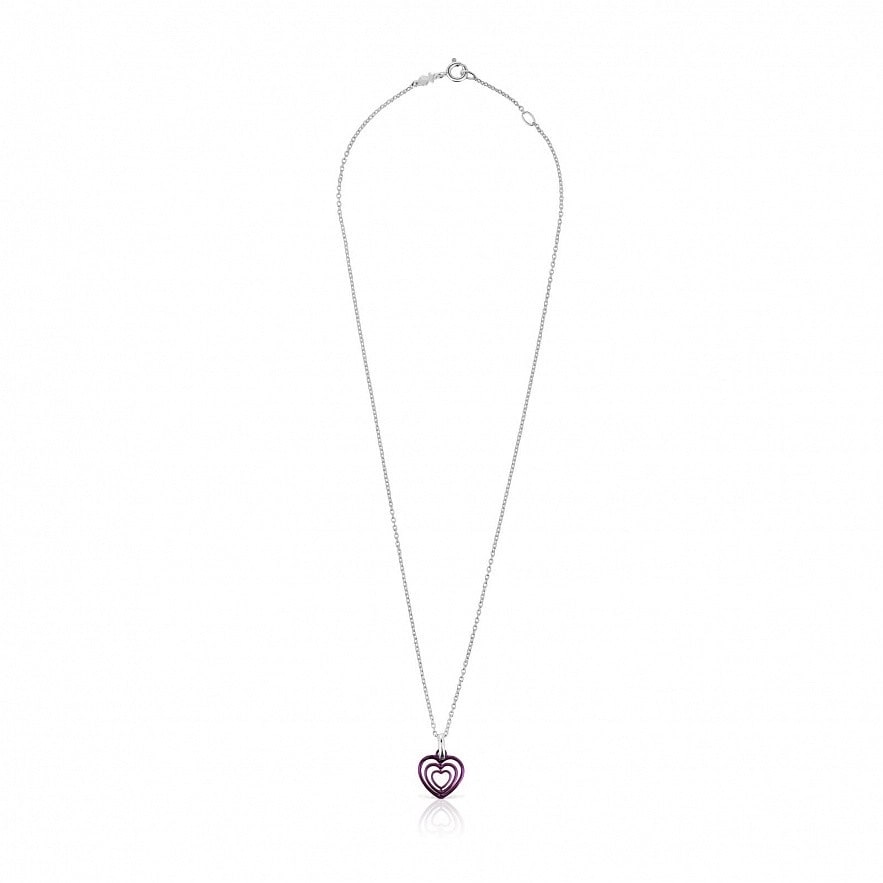 Колье TOUS Bickie из серебра 925 пробы с фиолетовым сердцем из IP-стали. Размер сердца: 11 мм. Длина колье: 38-40 см. Пружинная застежка-кольцо.