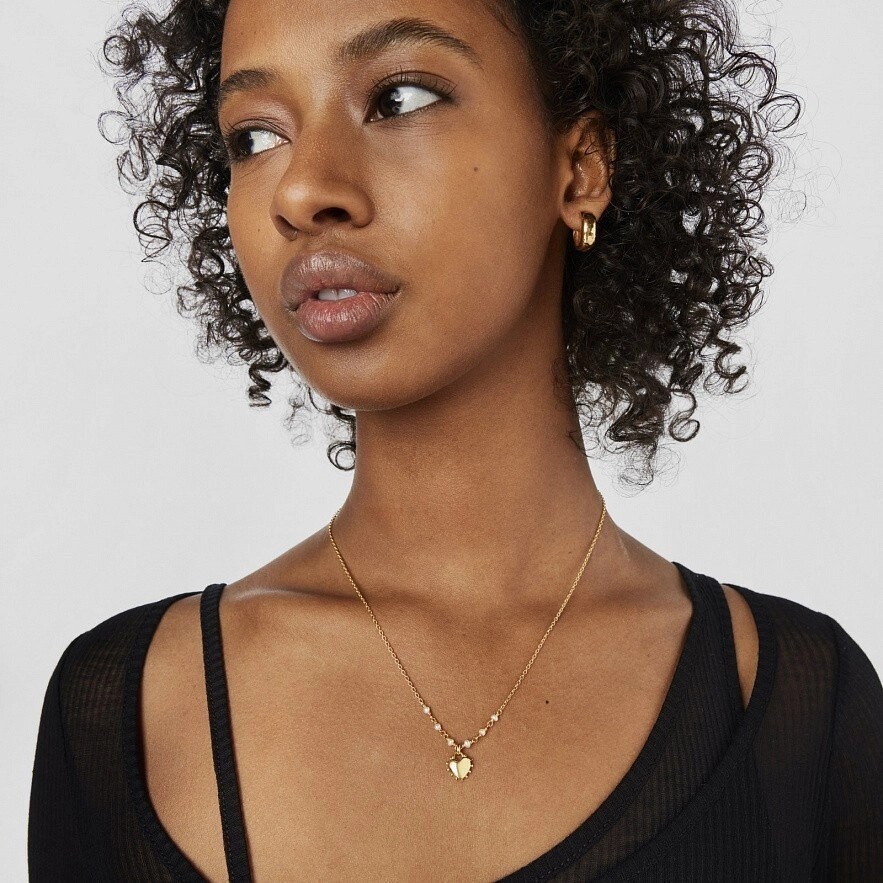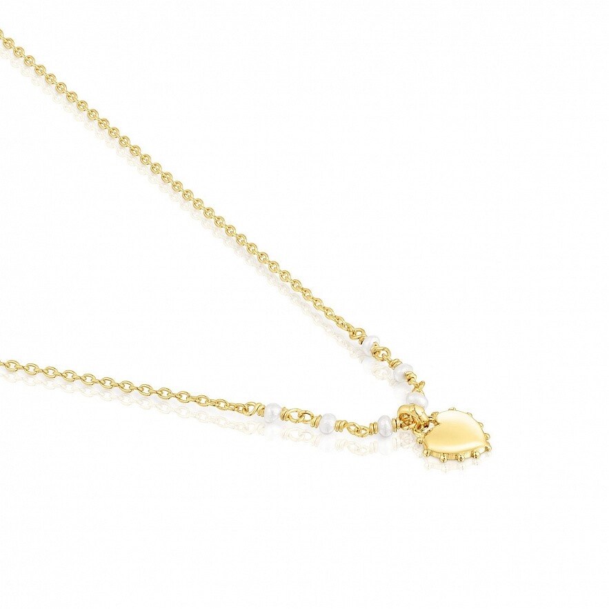 Колье TOUS San Valentin с серебряной вермелью и культивированным жемчугом с мотивом сердца. Размер культивируемых жемчужин: 3 мм. Размер мотива сердца: 10 мм. Длина ожерелья: 42-45 см. Застежка-кольцо.