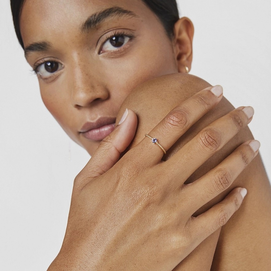Кольцо TOUS Cool Joy из желтого золота 18 карат с граненым круглым иолитом в оправе размером 3 мм. Толщина кольца: 1,2мм.