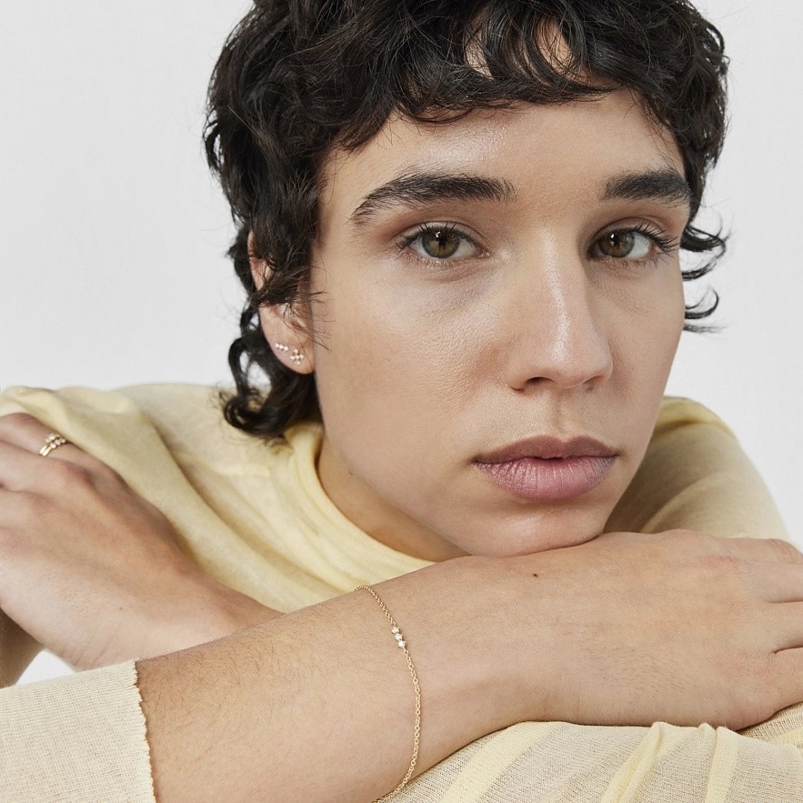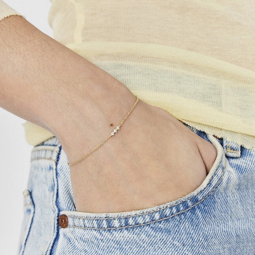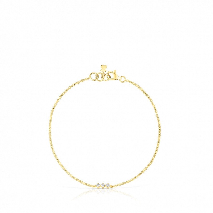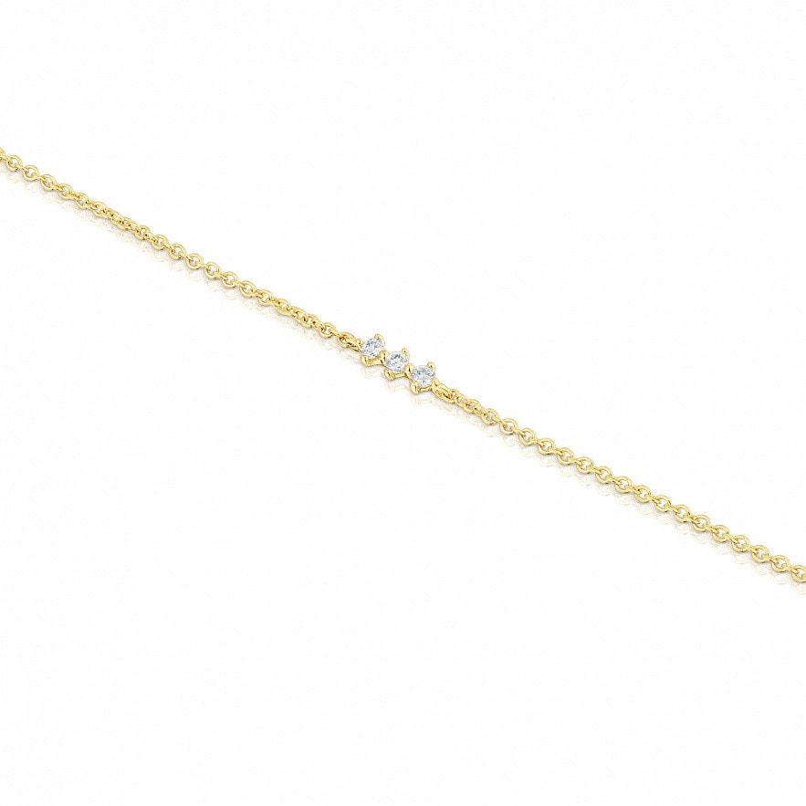 Браслет тонкий TOUS Les Classiques из 18-каратного золота с тремя бриллиантами классической огранки общим весом 0,05 карата. Качество бриллианта: H/SI. Длина браслета: 17,5 см. Застежка-лобстер.
