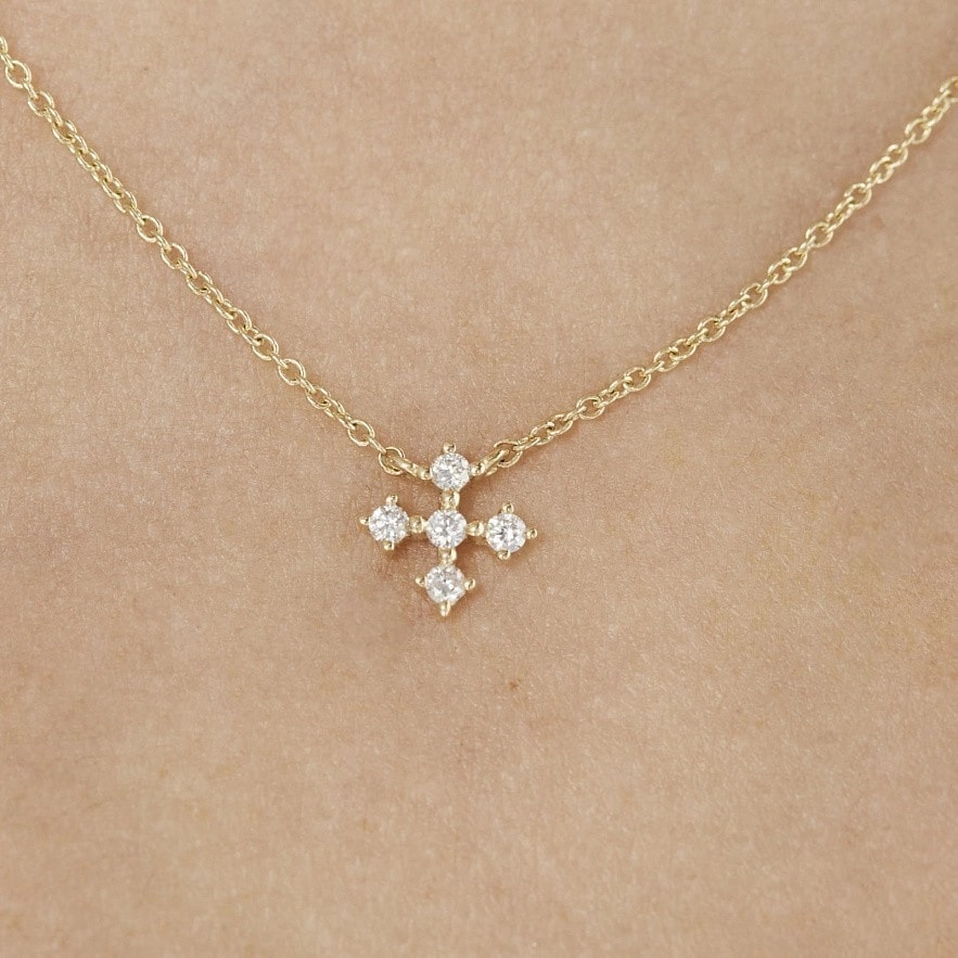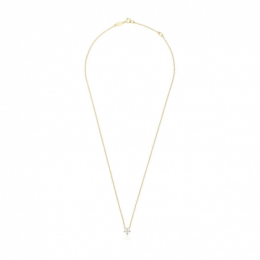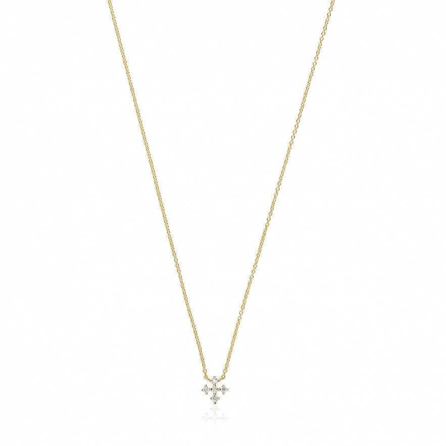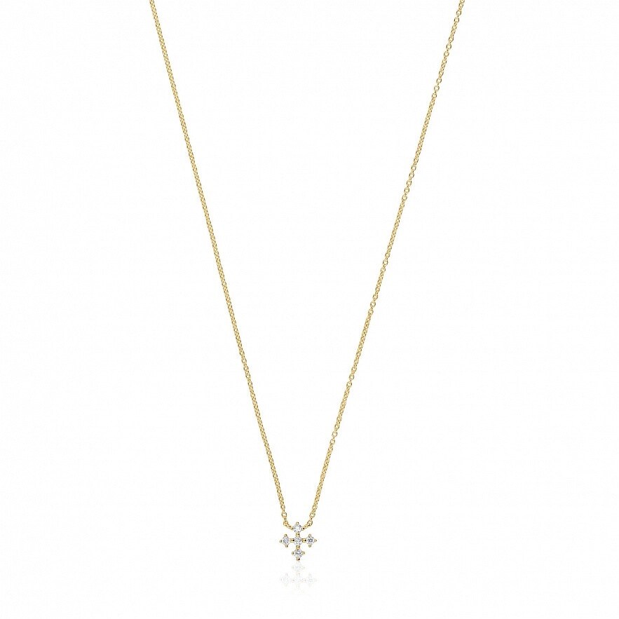 Ожерелье с крестом TOUS Les Classiques из 18-каратного золота с пятью бриллиантами классической огранки общим весом 0,08 карата. Качество бриллианта: H/SI. Длина колье: 42-45 см. Застежка пружинное кольцо.