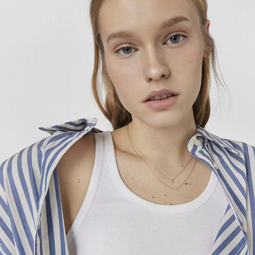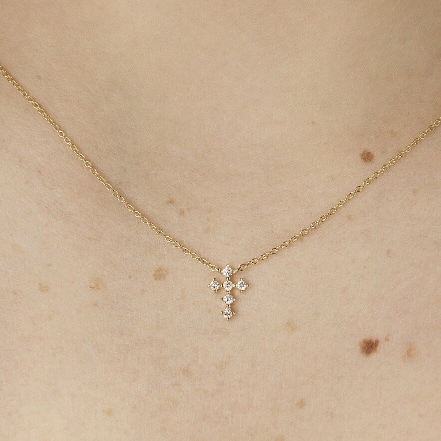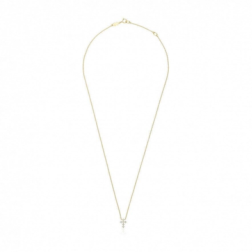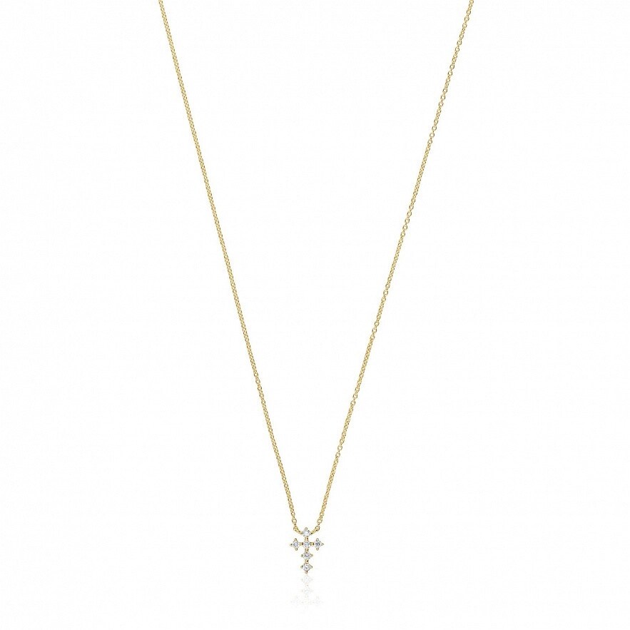 Ожерелье с крестом TOUS Les Classiques из 18-каратного золота с шестью бриллиантами классической огранки общим весом 0,09 карата. Качество бриллианта: H/SI. Длина колье: 42-45 см. Застежка пружинное кольцо.