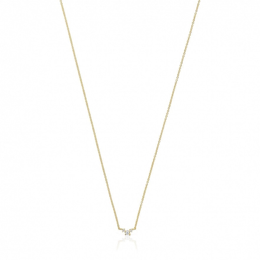 Ожерелье TOUS Les Classiques из 18-каратного золота с тремя бриллиантами классической огранки общим весом 0,06 карата. Качество бриллианта: H/SI. Длина колье: 42-45 см. Застежка пружинное кольцо.