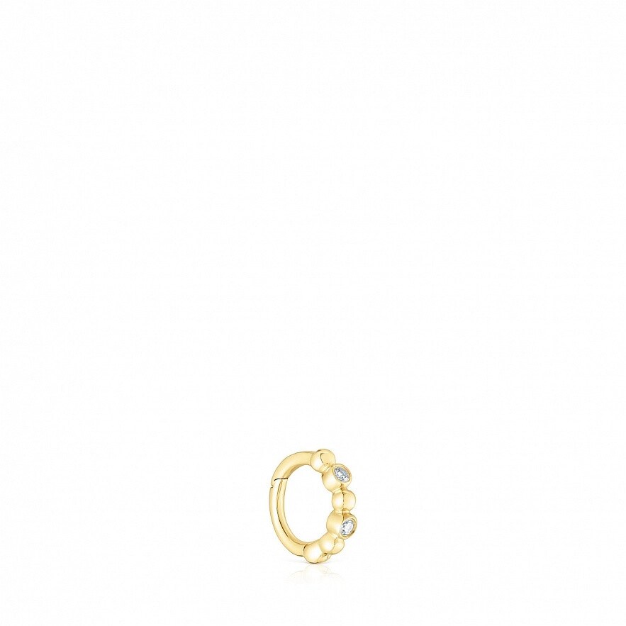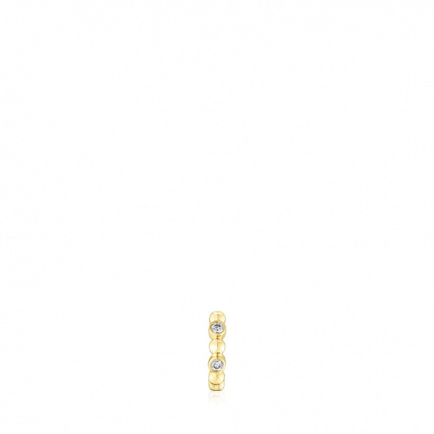 Серьга-каффа TOUS Les Classiques с золотыми шариками и двумя бриллиантами классической огранки общим весом 0,03 карата. Качество бриллианта: H/SI. Диаметр кольца: 6,3 мм. Толщина кольца: 1,1 мм.