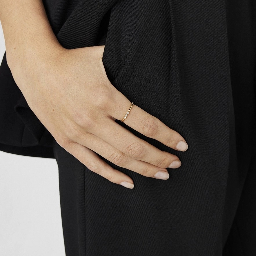 Кольцо TOUS Les Classiques из 18-каратного золота с тремя бриллиантами классической огранки общим весом 0,07 карата. Качество бриллианта: H/SI. Толщина кольца: 1,3 мм.