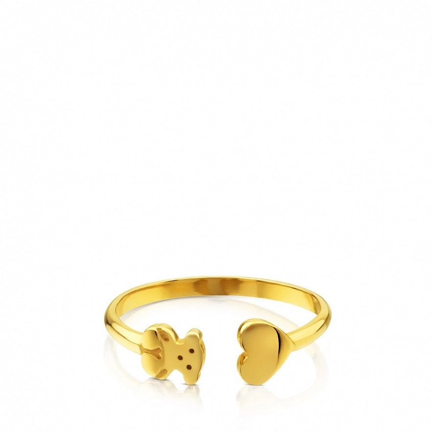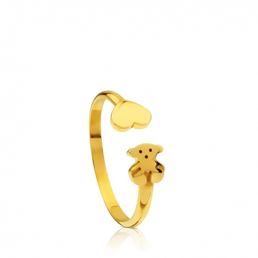 Кольцо TOUS Sweet Dolls, с желтого золота 18 kt, з ведмедиком та сердечком. Размери: 6 мм.