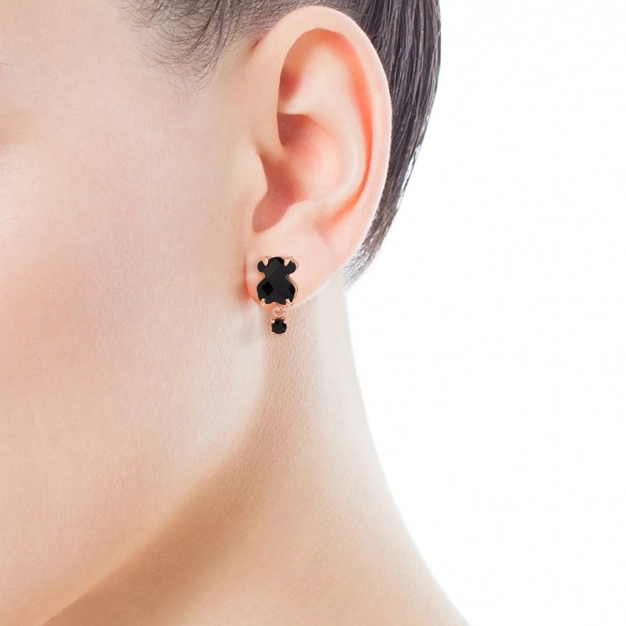 серьги TOUS Erma, с серебра с покрытием Vermeil , з оніксом. Размер: 0,9 см. Vermeil : Серебро покрытое слоем золота 18kt.