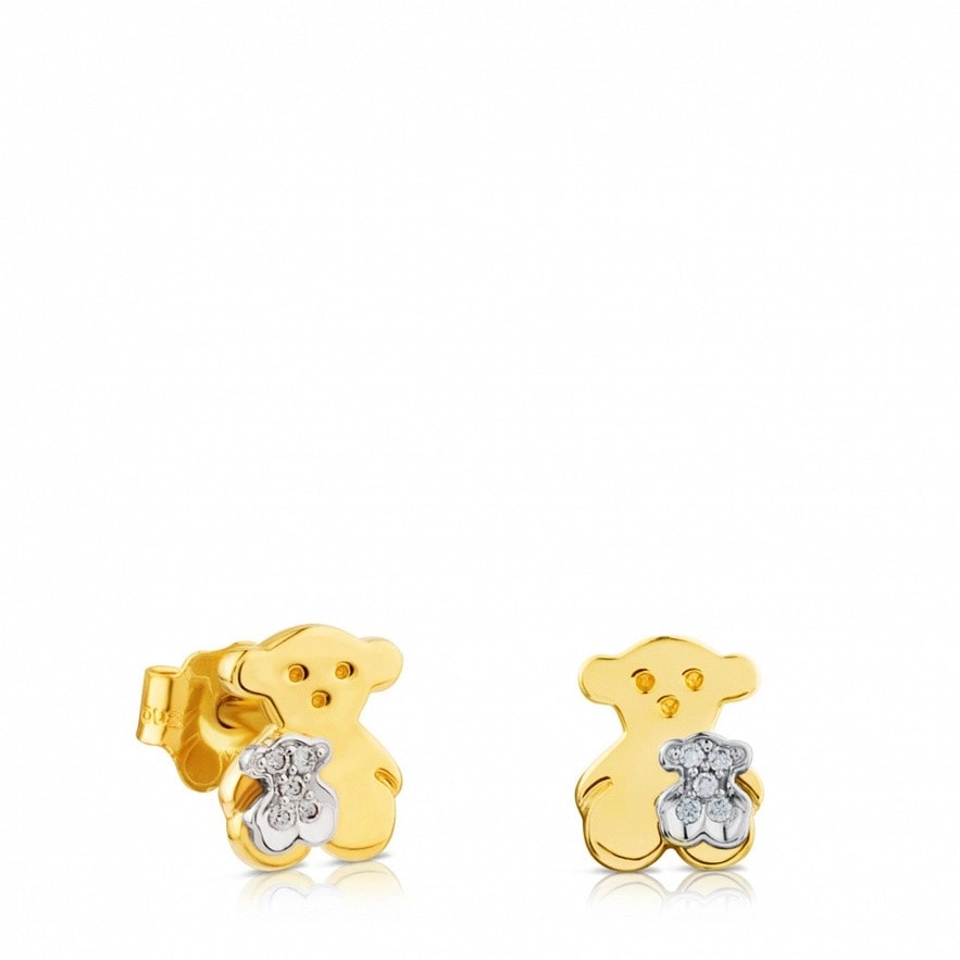 серьги TOUS New Sweet Dolls с белого и желтого золота 18 kt с бриллиантами. Застежка-пусет. Общий вес: 0,04 кар. Вставка: 0,85 см.