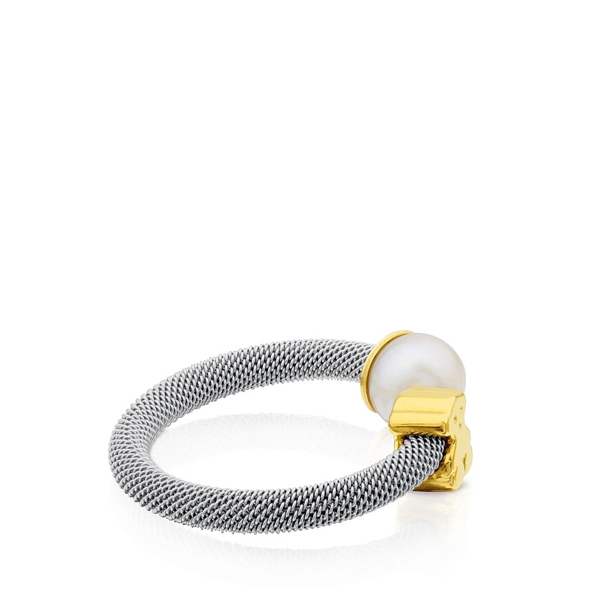 Кольцо TOUS Icon из нержавеющей стали и 18-каратного желтого золота с культивированной жемчужиной размером 6,5-7 см. Мотив: 0,6 см.