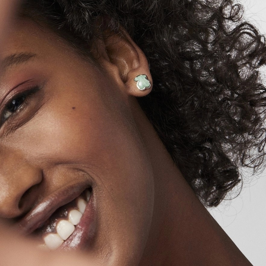 серьги TOUS Color, срібло та амазоніт. Размер: 9 мм.