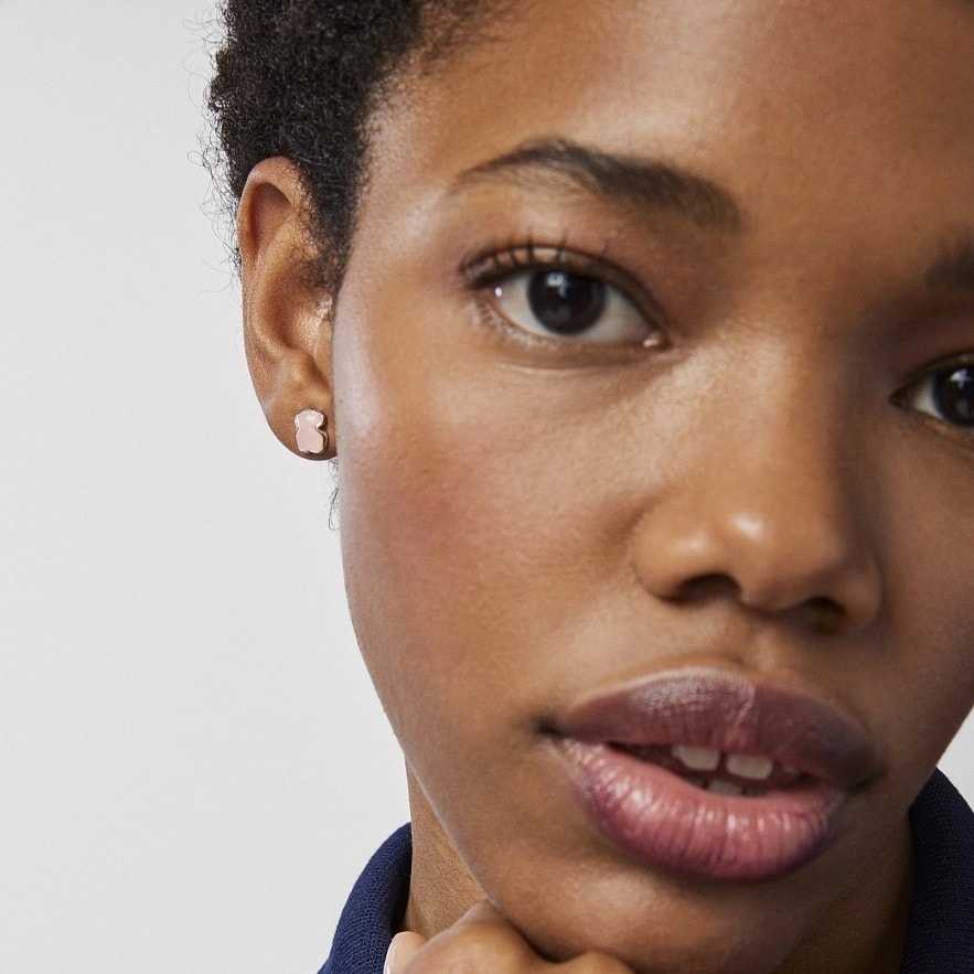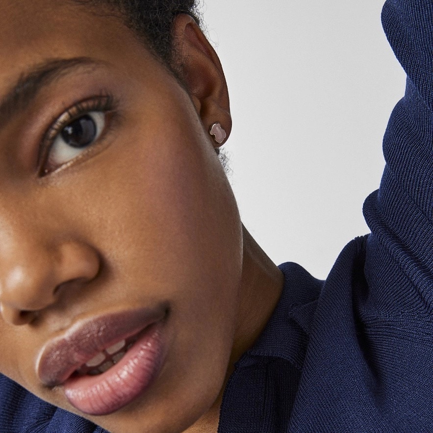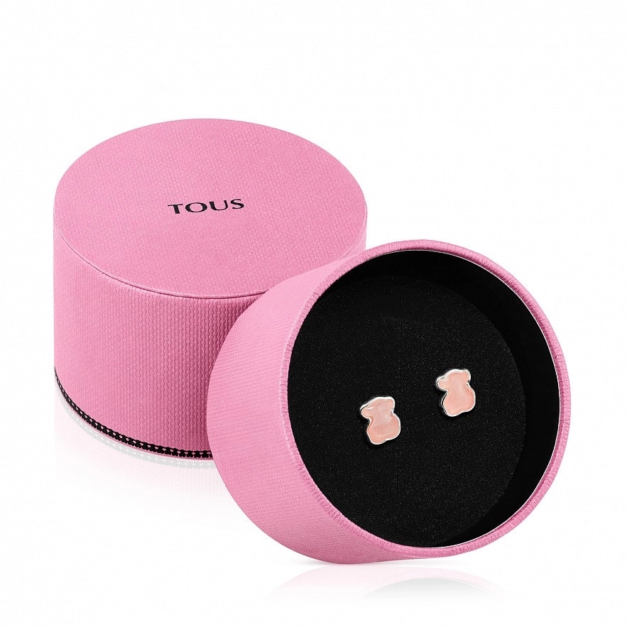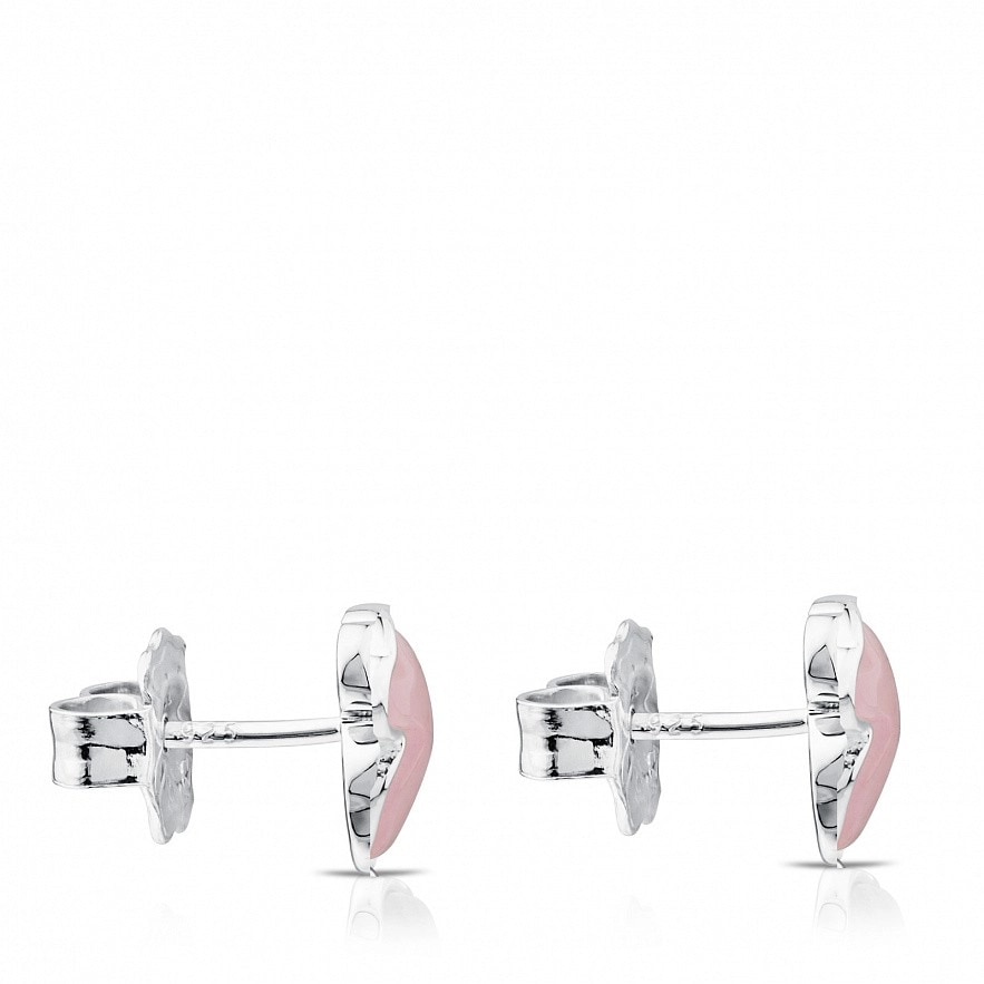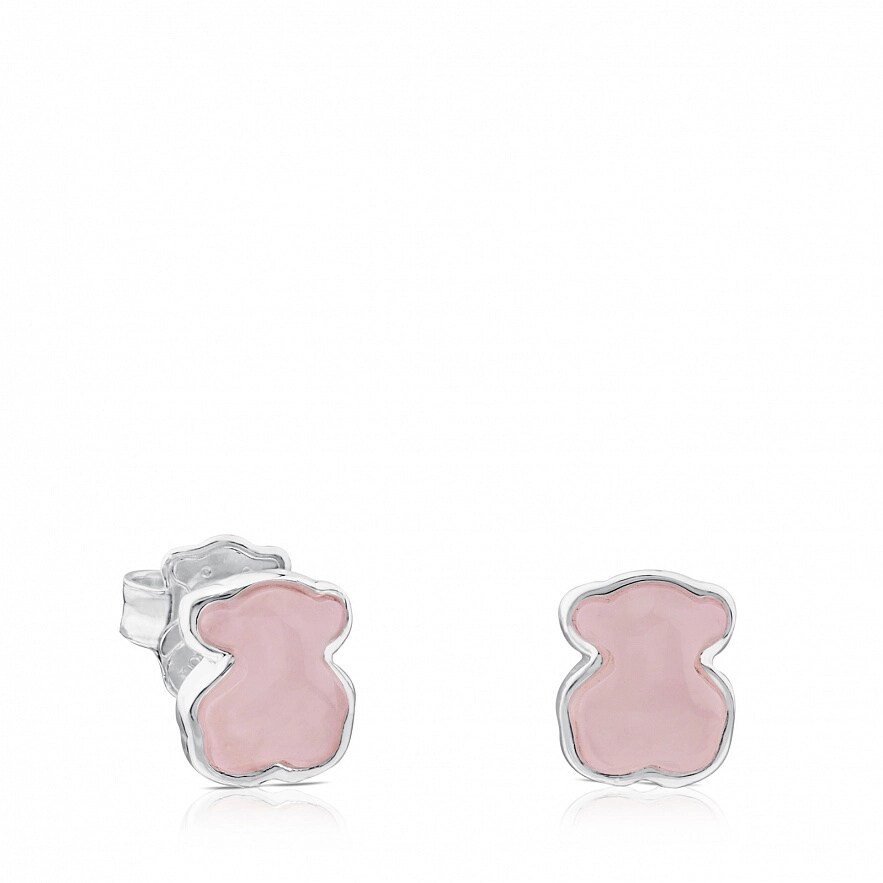 Серьги TOUS New Color из стерлингового серебра с розовым кварцитом. Замок-гвоздик. Фигурка: 0,9 см.