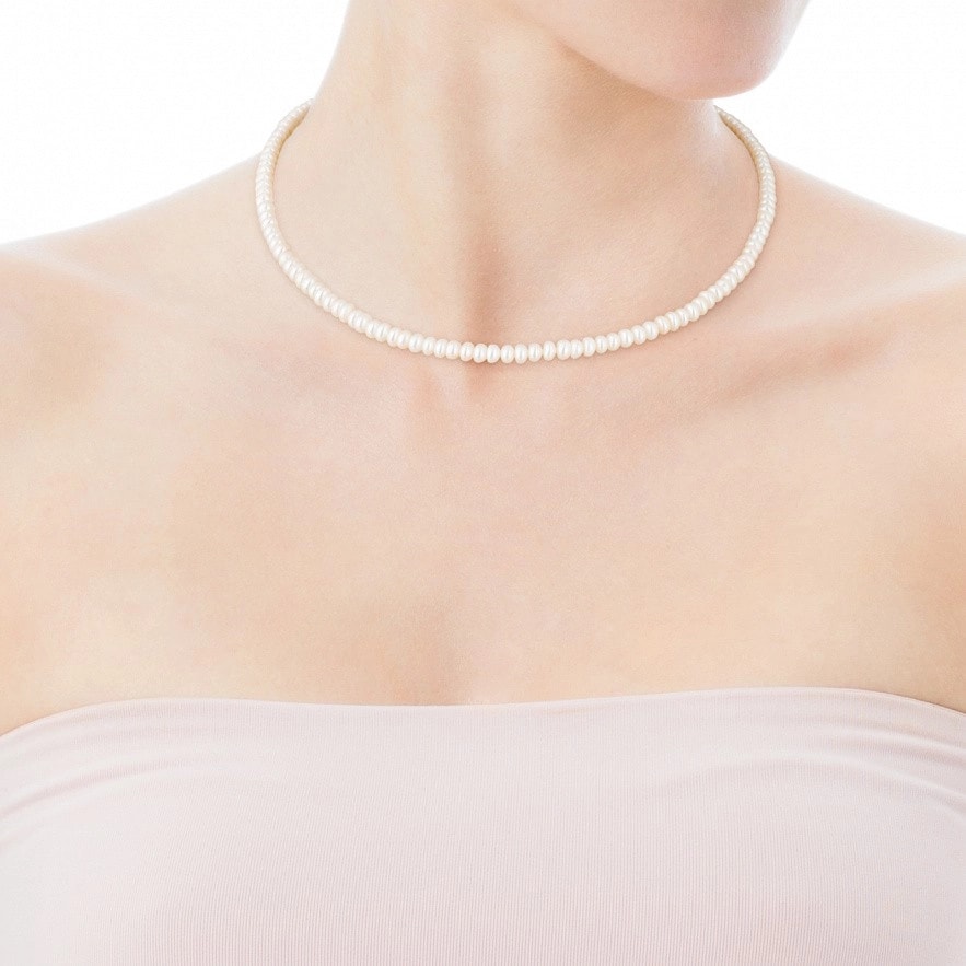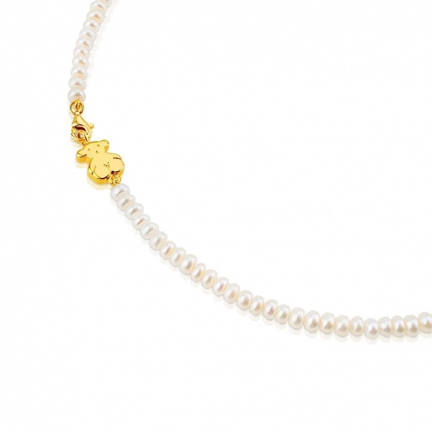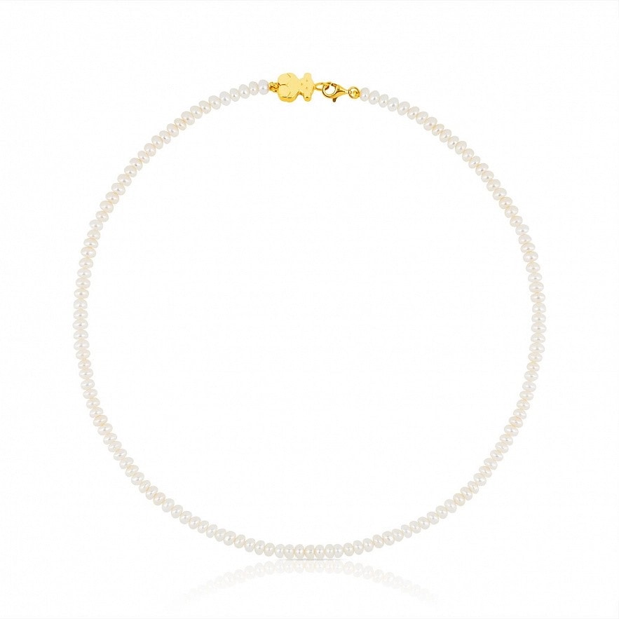 Ожерелье TOUS Sweet Dolls, жовте золото 18kt з 0.4 см культивованими перлинами. Длина 44.5 см.