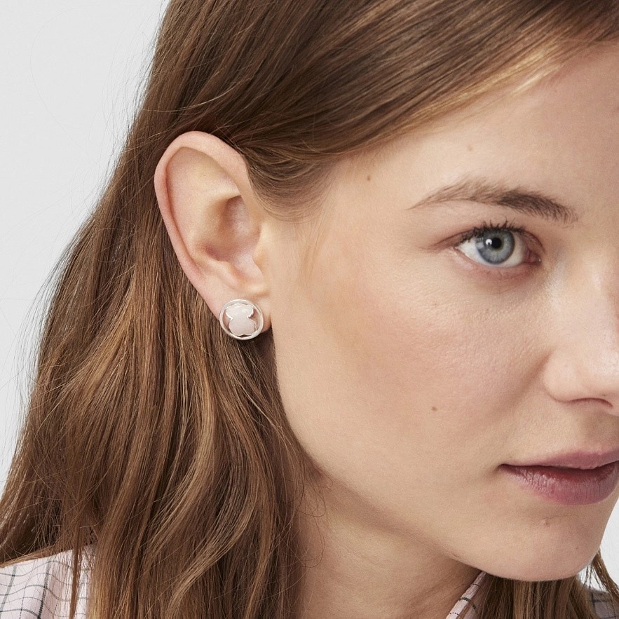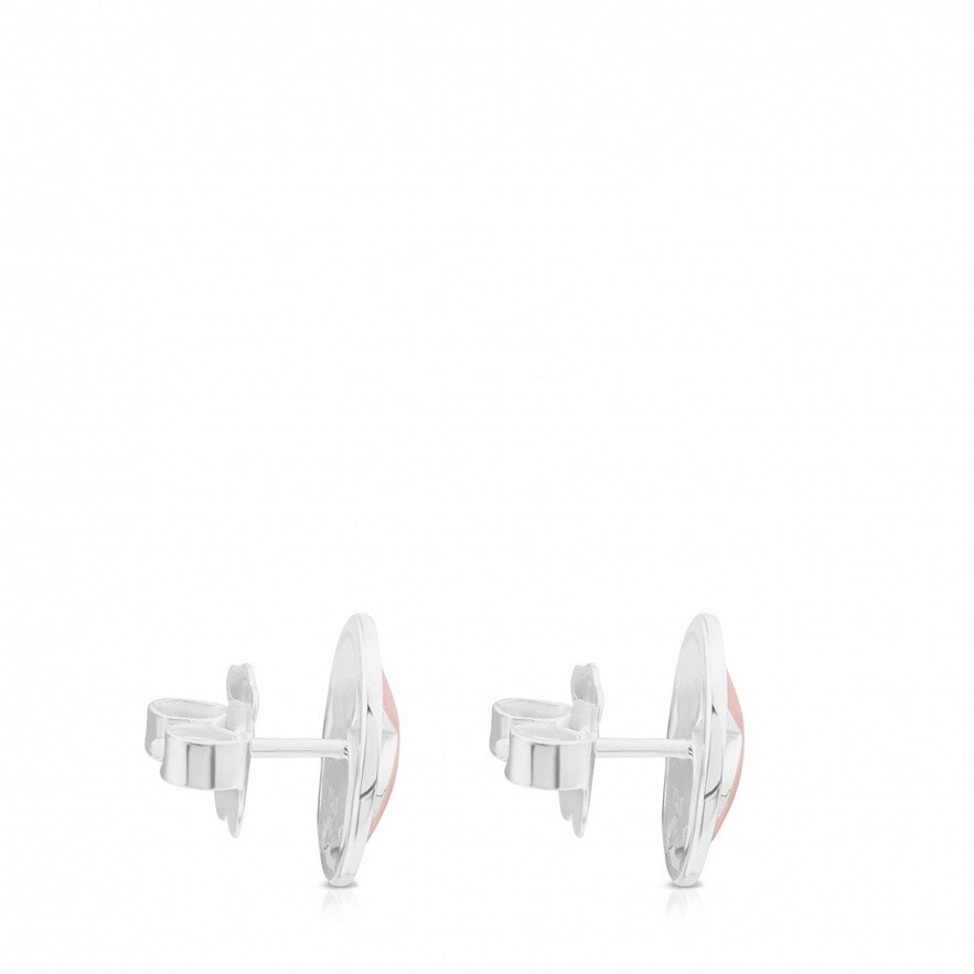 Серьги TOUS Camille из серебра 925 пробы с розовым кварцем. Вставка: 1,4 см Застежка-пусет.