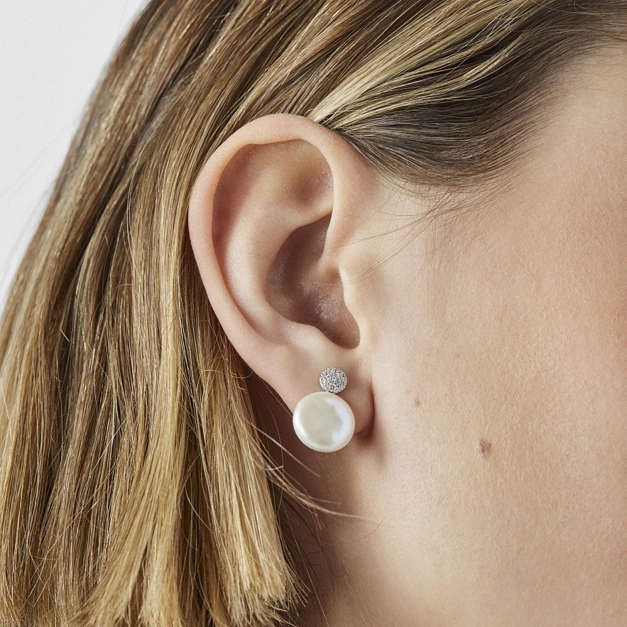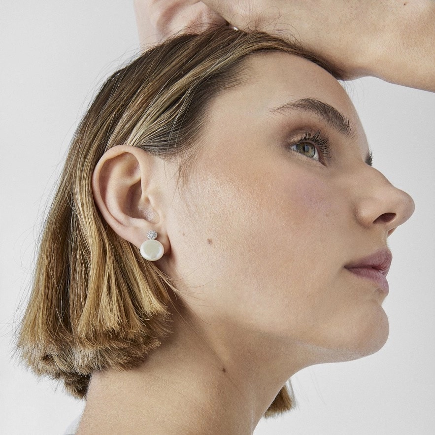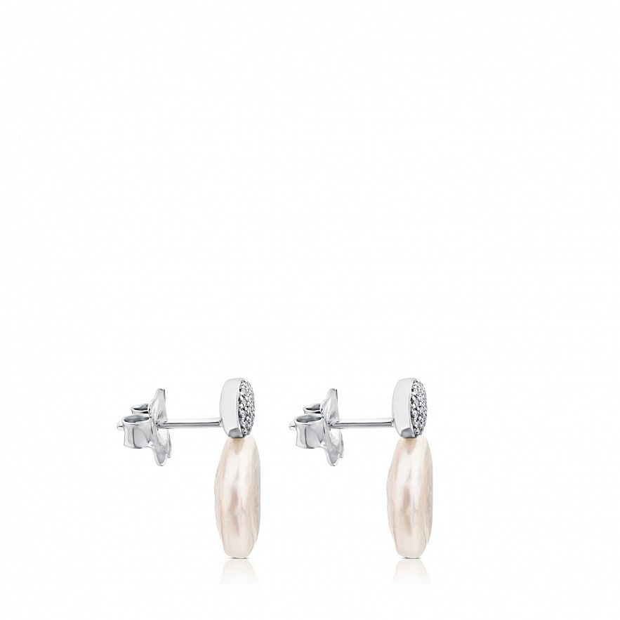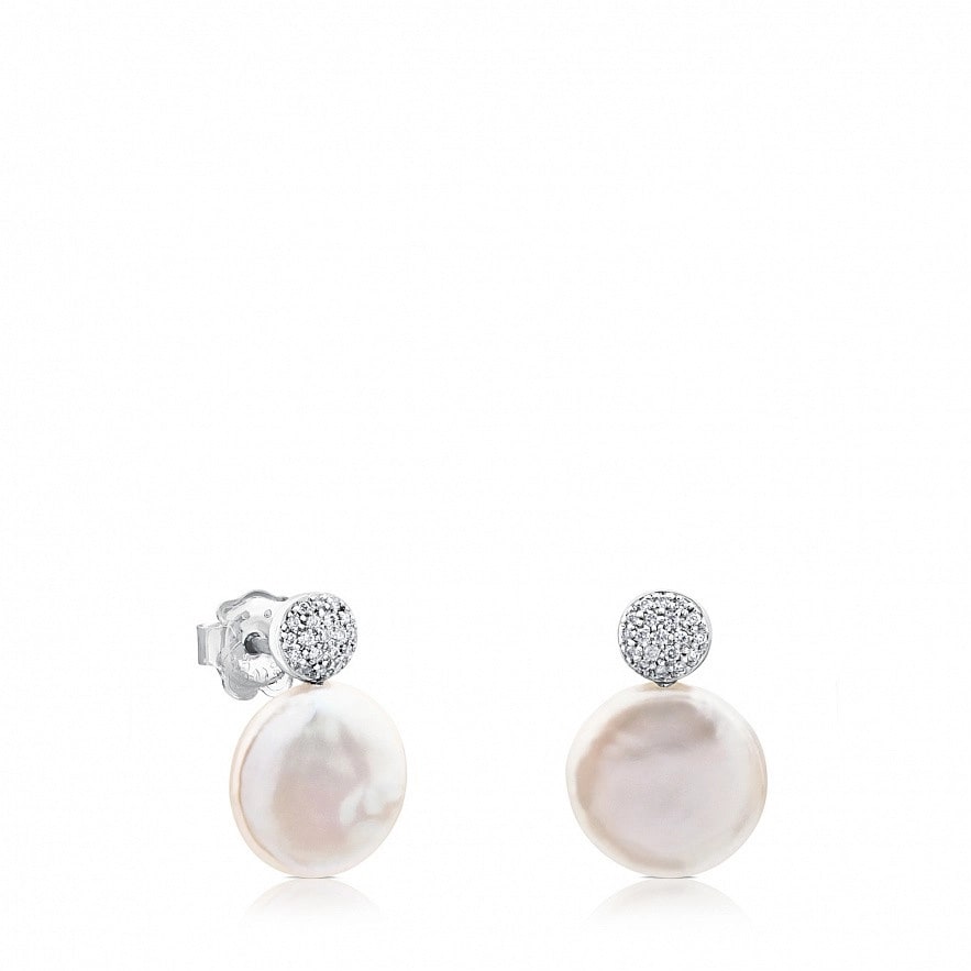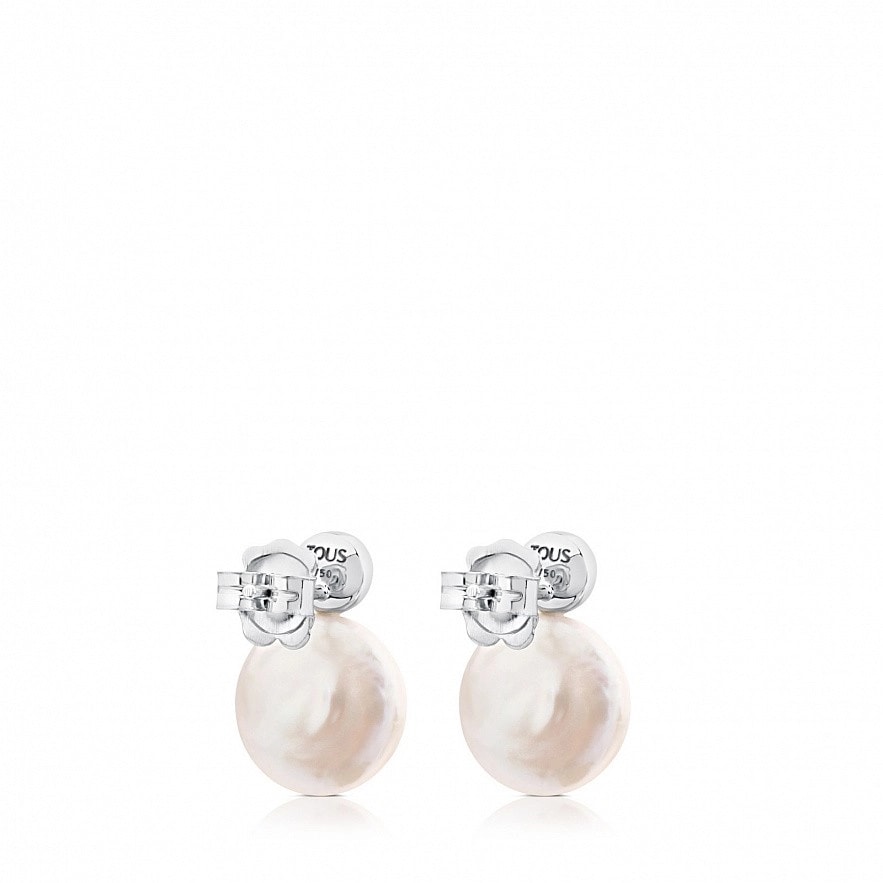 Серьги TOUS Alecia, из белого золота 18 kt, с бриллиантами 0,16 ct и жемчугом. Застежка - пусет.