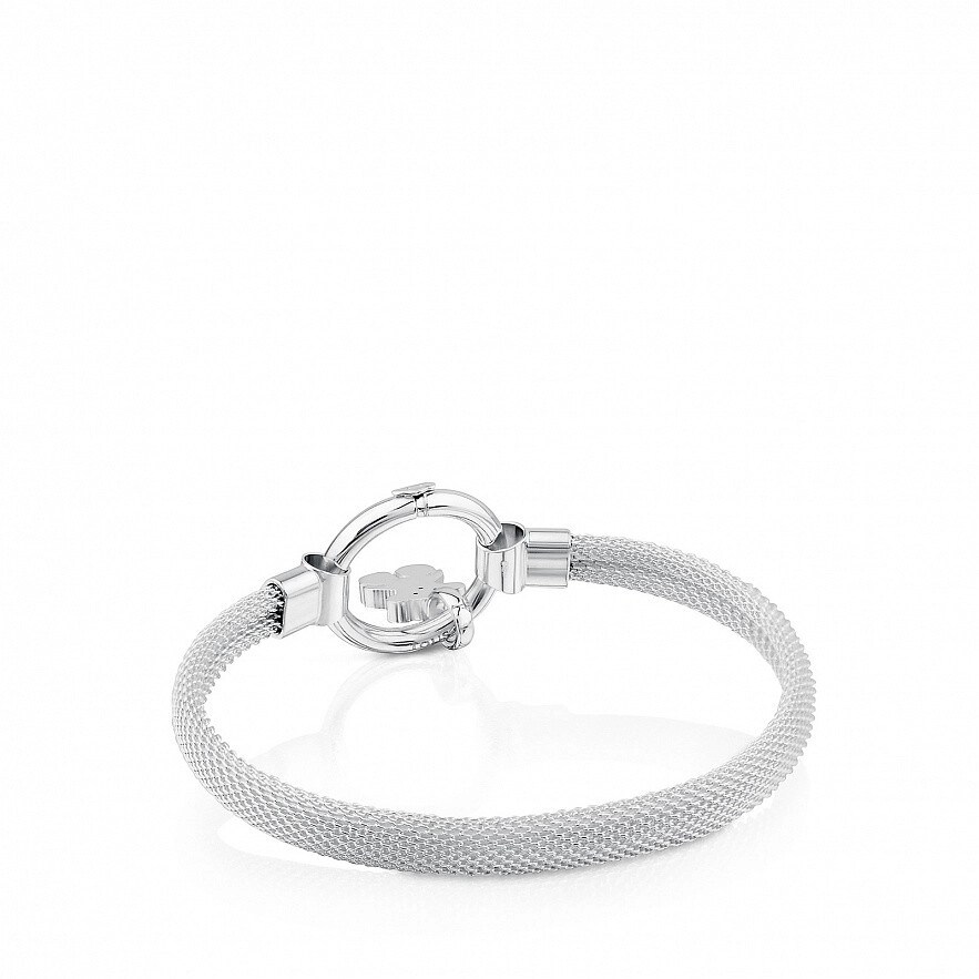 Браслет TOUS Hold, из серебра 925 пробы. Кольцо: 2 см. Медвежонок: 1,15 см. Длина: 15 см.