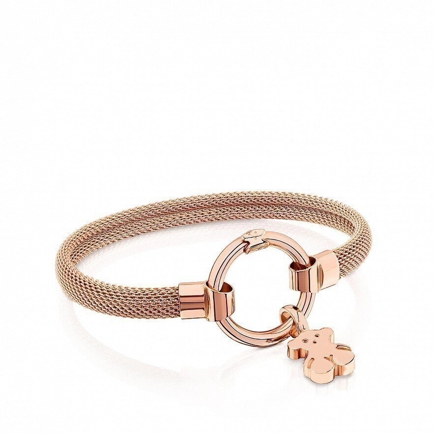 Браслет TOUS Hold, из стали с IP-покрытием черного цвета и серебра 925 пробы с розовым покрытием Vermeil . Кольцо: 2 см. Медвежонок: 1,15 см. Длина: 15 см. Vermeil : Серебро покрытое слоем золота 18kt.
