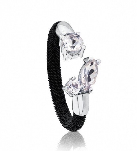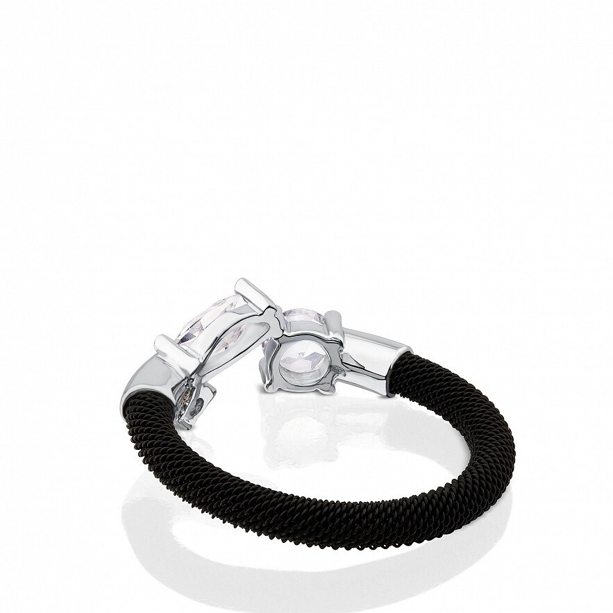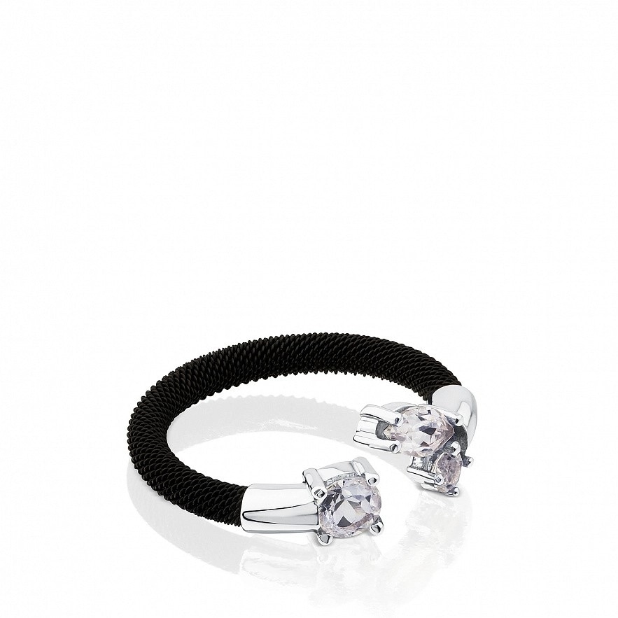 Кольцо TOUS Eklat из стали с черным ионным напылением, белого золота 18 кар., с тремя белыми топазами. Вставки: 0,45 см и 0,9 см.