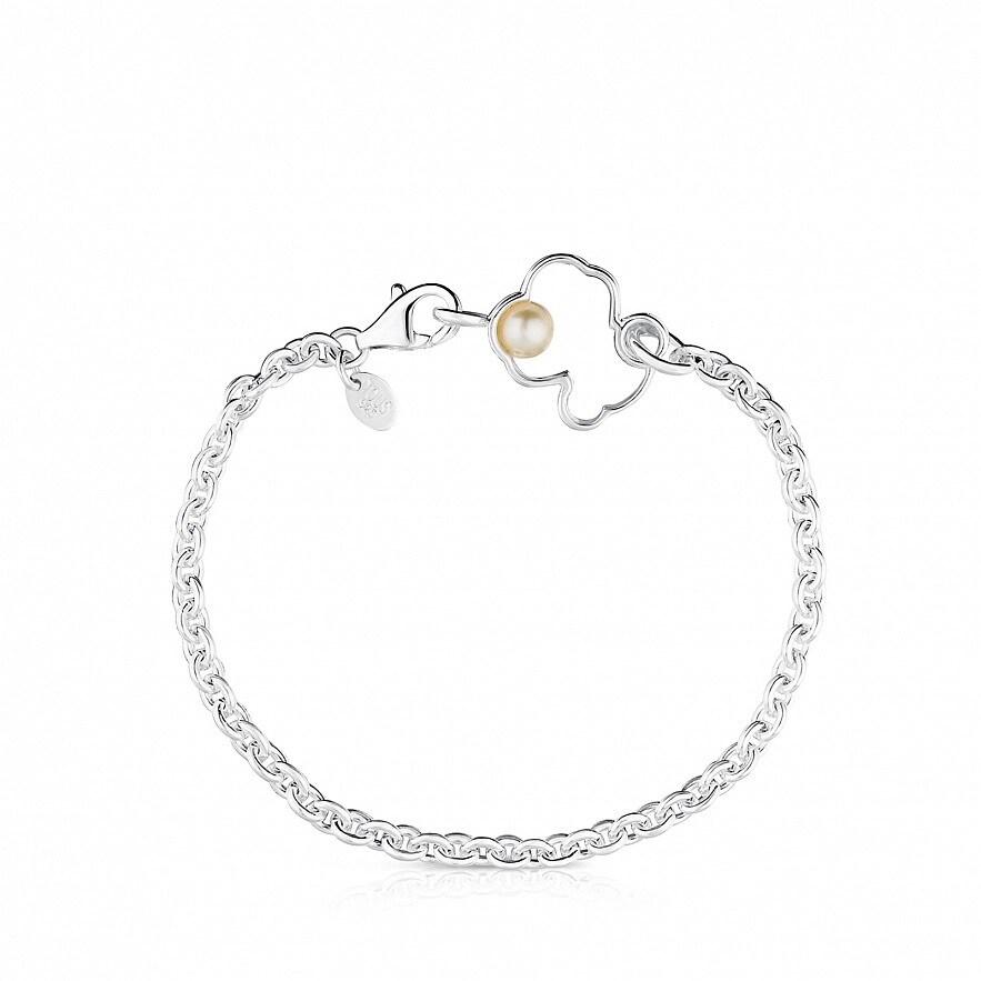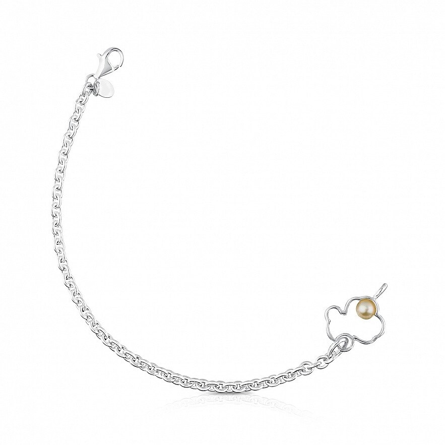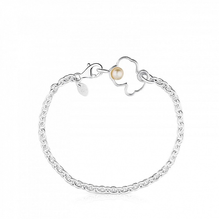 Браслет TOUS Silueta, из серебра 925 пробы с жемчугом 0,5см. Фигурка: 1,6 см. Длина: 18 см.