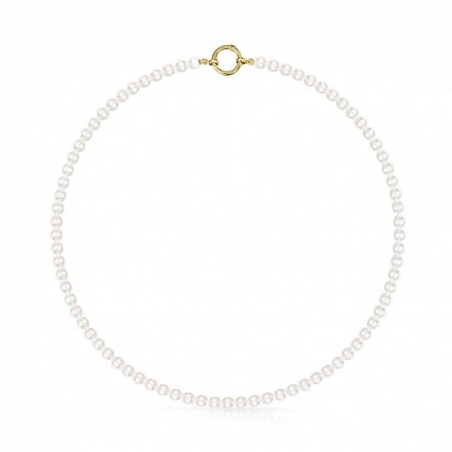 Ожерелье TOUS Hold с жемчугом размером 0,5 см и желтым золотом 18 карат. Высота: 1 см. Длина: 45 см. Совершенствуйте его с помощью подвесок или кольца.