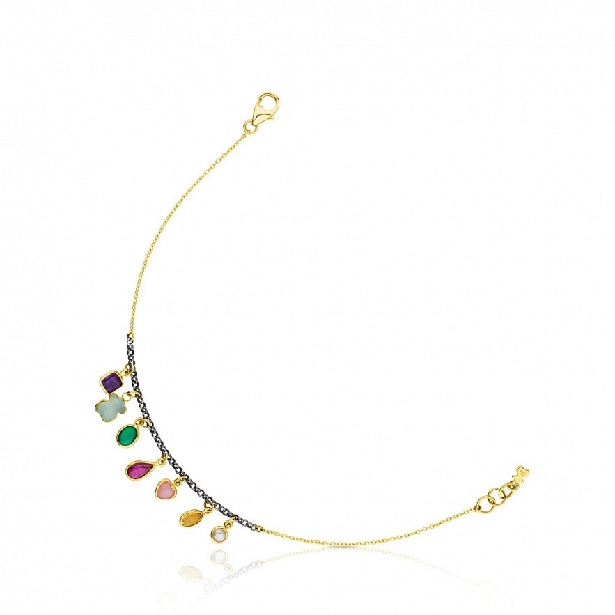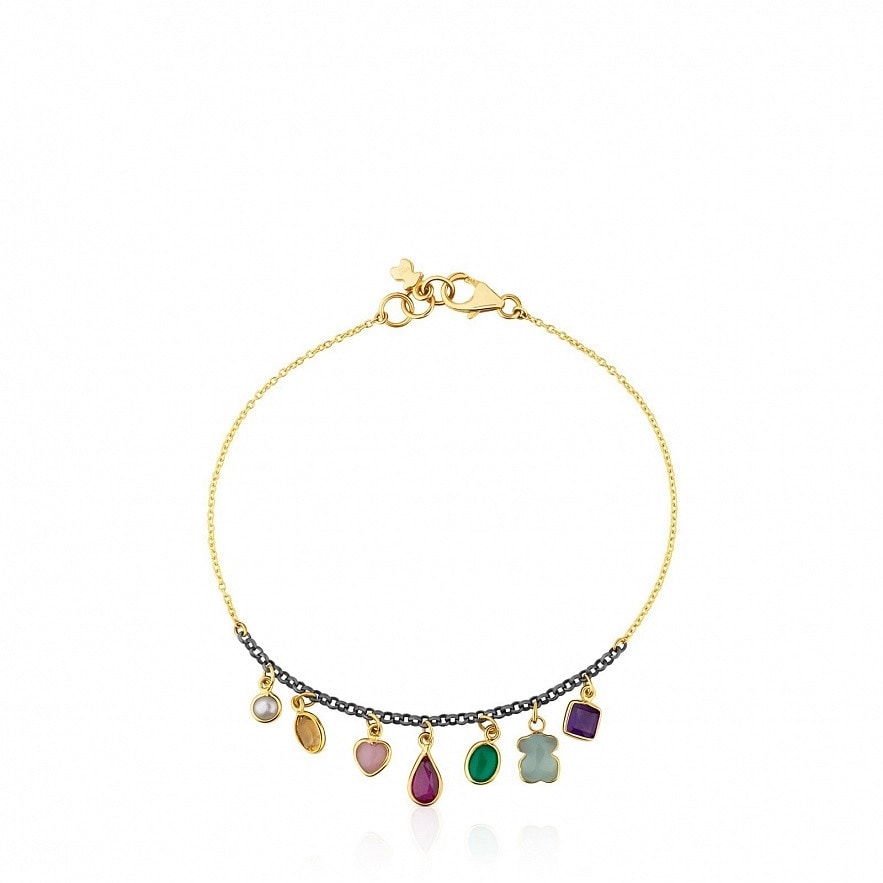 Браслет TOUS Gem Power из желтого золота 750 пробы с оксидированым серебром, с рубином, цитрином, розовым кварцем, халцедоном, агатом, аметистом и жемчугом. Размер: 0,2-0,55 см. Длина: 17,5 см.