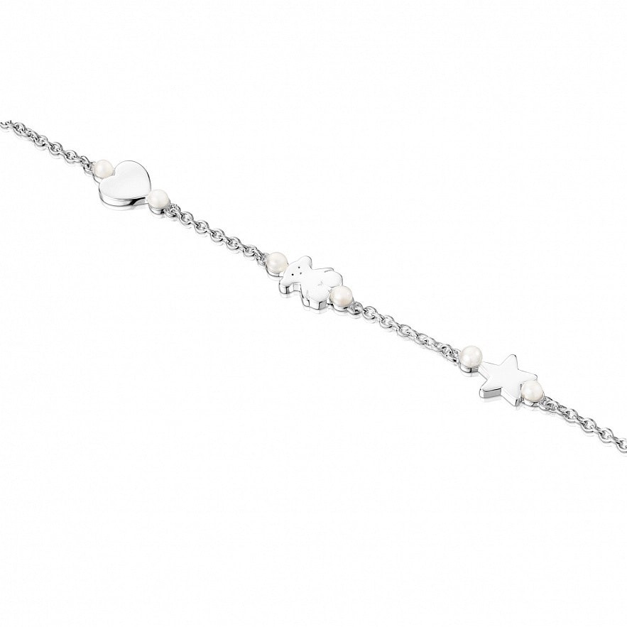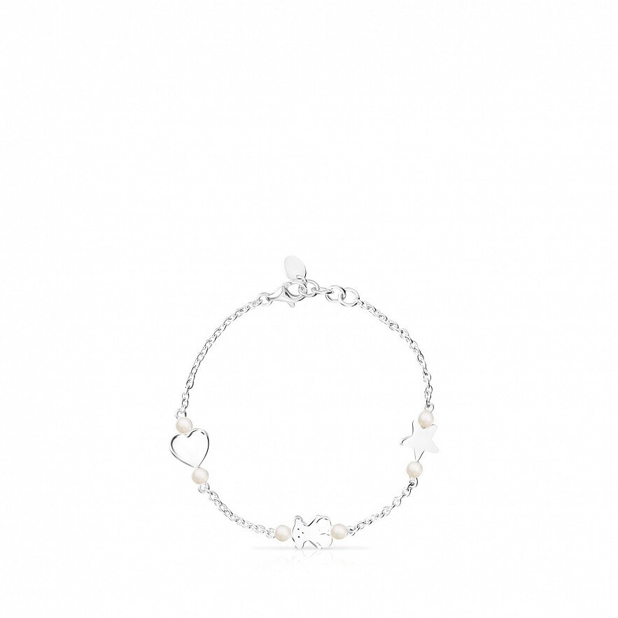 Браслет TOUS Real Sisy, из серебра 925 пробы со вставками из жемчуга. Длина: 17,5 см.