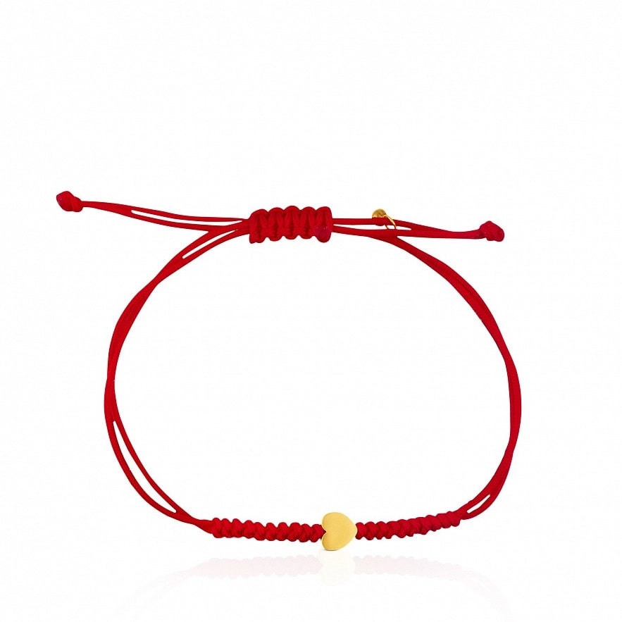 Браслет TOUS XXS, с желтого золота 24 kt з червоним шнурком. Размер: 0,5 см. Длина: 20 см.
