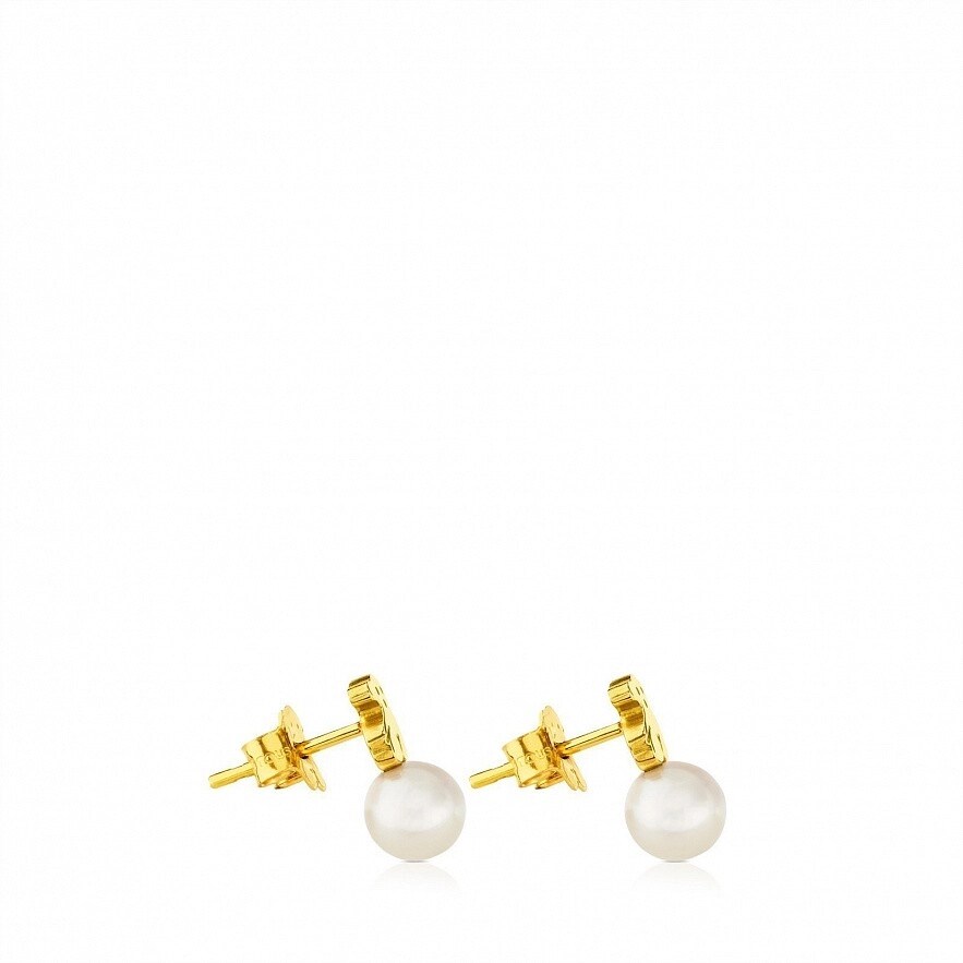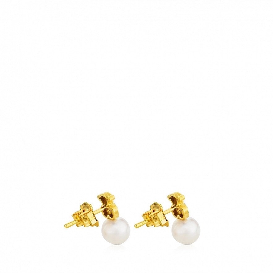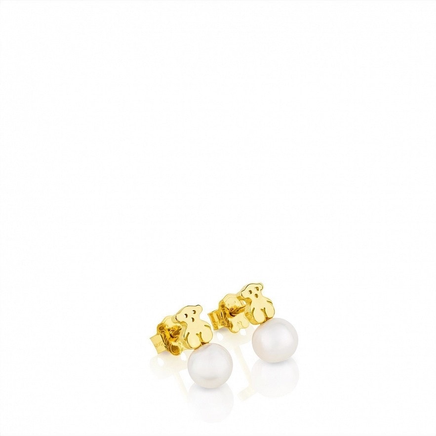 серьги TOUS Puppies, с желтого золота 18 kt, з перлинами.