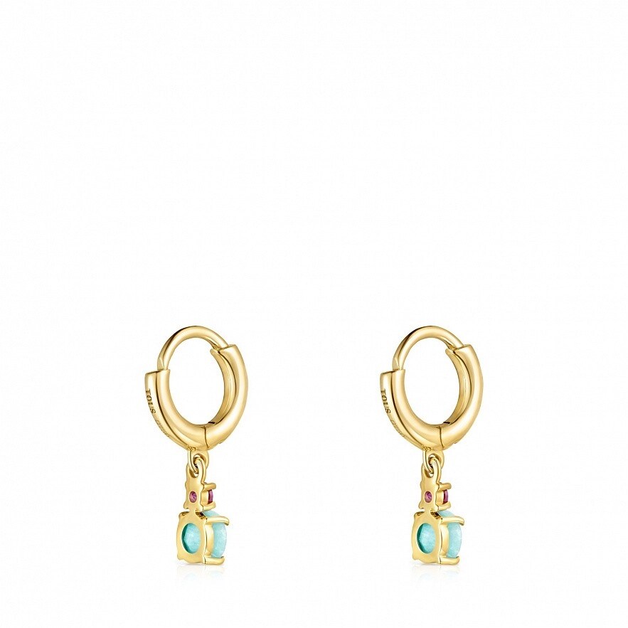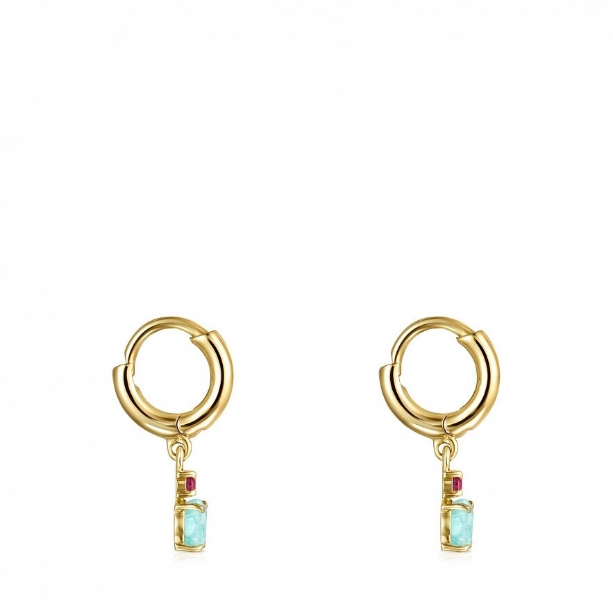 Серьги-обручи TOUS Mini Ivette из золота 18 карат c амазонитом и рубином. Каталонская застежка. Размер: 0,6 см.
