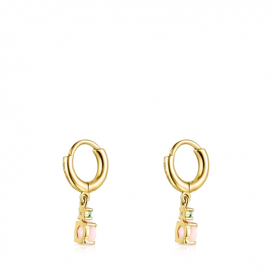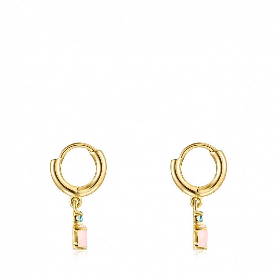Серьги-обручи TOUS Mini Ivette из золота 18 карат c розовым опалом и голубым топазом. Каталонская застежка. Размер: 0,6 см.
