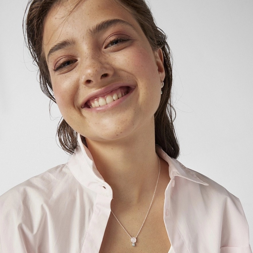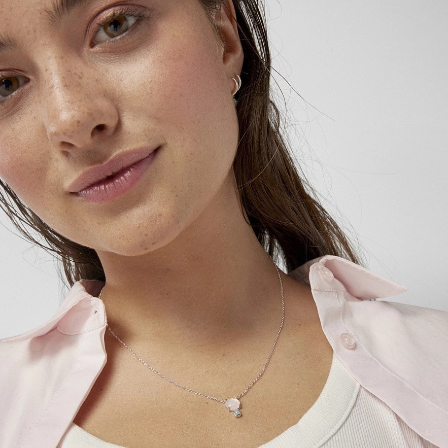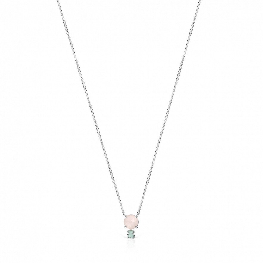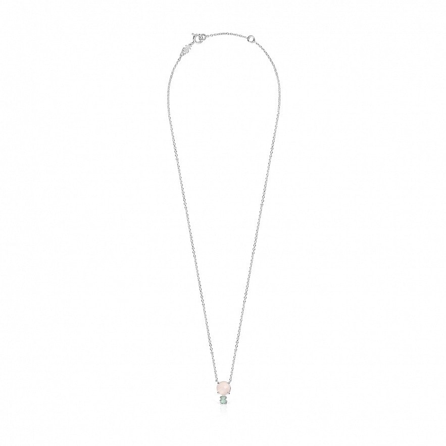 Ожерелье TOUS Mini Color из серебра высшей пробы с розовым кварцем и амазонитом. Размер: 1,2 см. Длина: 45 см.