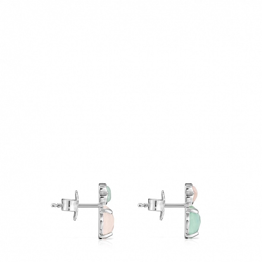 Серьги TOUS Mini Color из серебра высшей пробы с амазонитом и розовым кварцем. С фиксированным штифтом. Размер: 1,2 см.