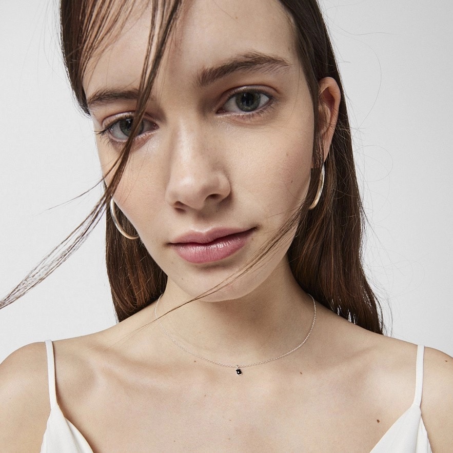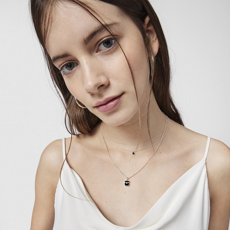 Колье и кулон TOUS Mini Onix из серебра высшей пробы с ониксом. Размер кулона: 0,4 см. Длина: 45 см.