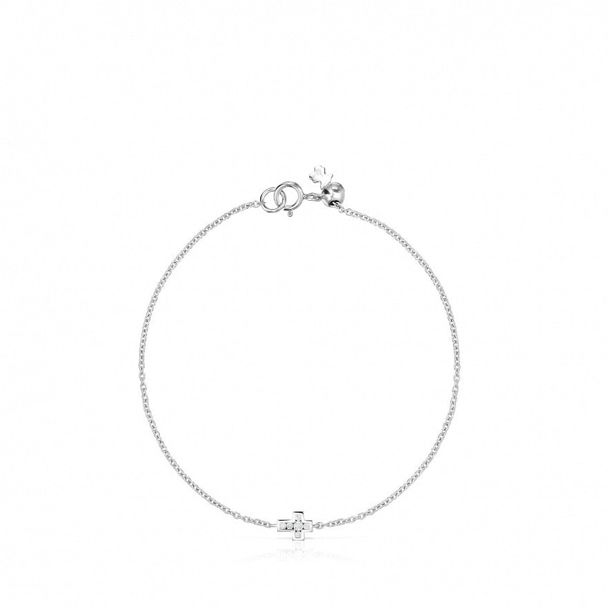 Браслет с крестиком TOUS Les Classiques из белого золота 750 пробы с бриллиантами. Общая масса: 0,05 ct. Размер: 0,6 см. Длина: 18 см.