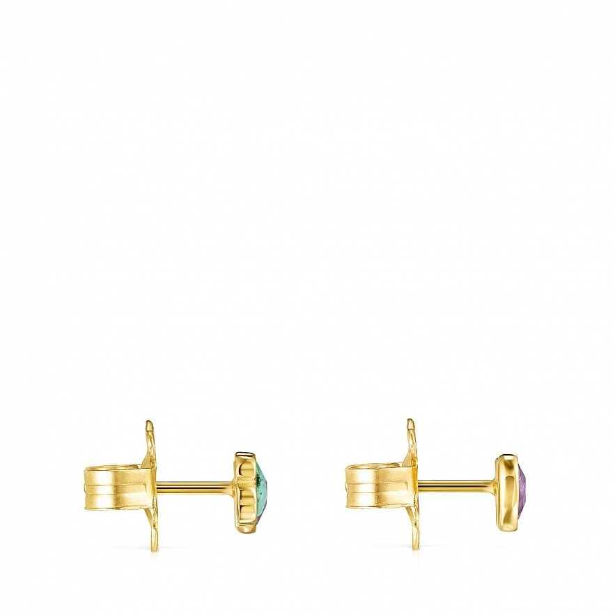 Серьги TOUS Glory из вермеля с амазонитом и аметистом. С фиксированным штифтом. Размер: 0,4 см. (Вермель: серебро высшей пробы, покрытое слоем золота 18 карат).
