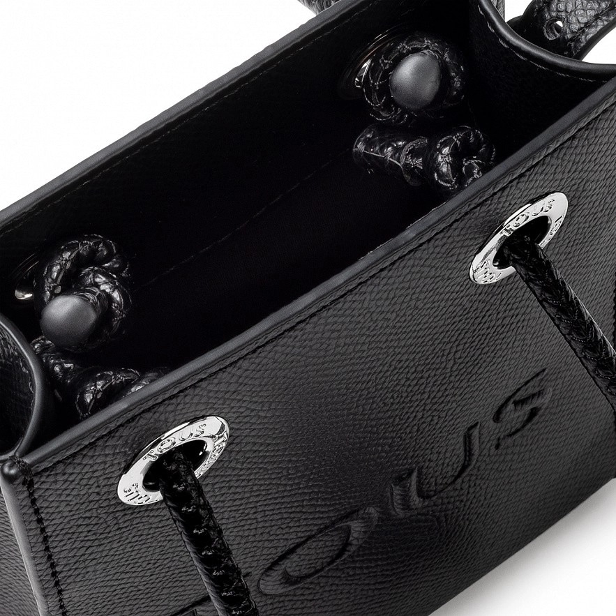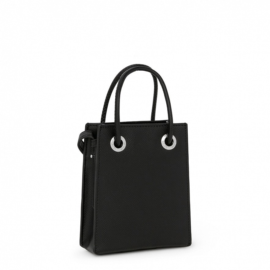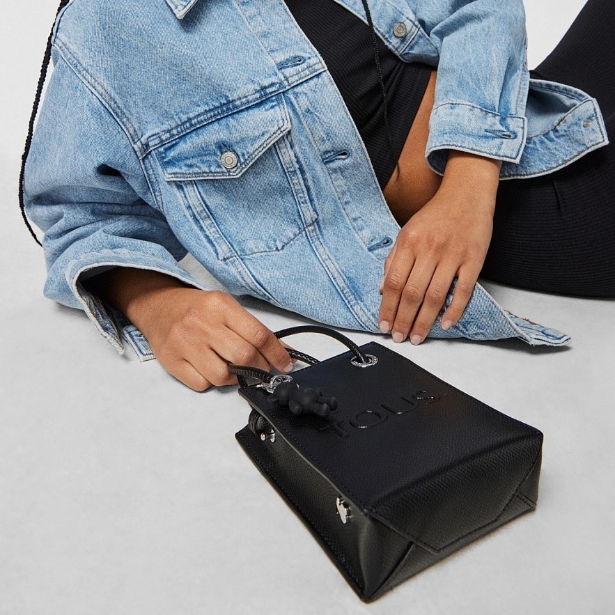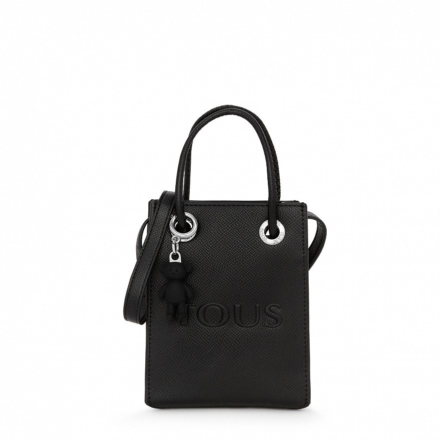 Маленька сумка TOUS через плече з колекції Pop із поліуретану з покриттям Saffiano, чорного кольору. Застібка на магнітний гудзик. Довгий регульований плечовий ремінь - незнімний. У сумці наявна одна плоска внутрішня кишеня. Сумочка має деталь з підвіскою-ведмедиком. Розміри: 14 x 11,5 x 4,5 см.
