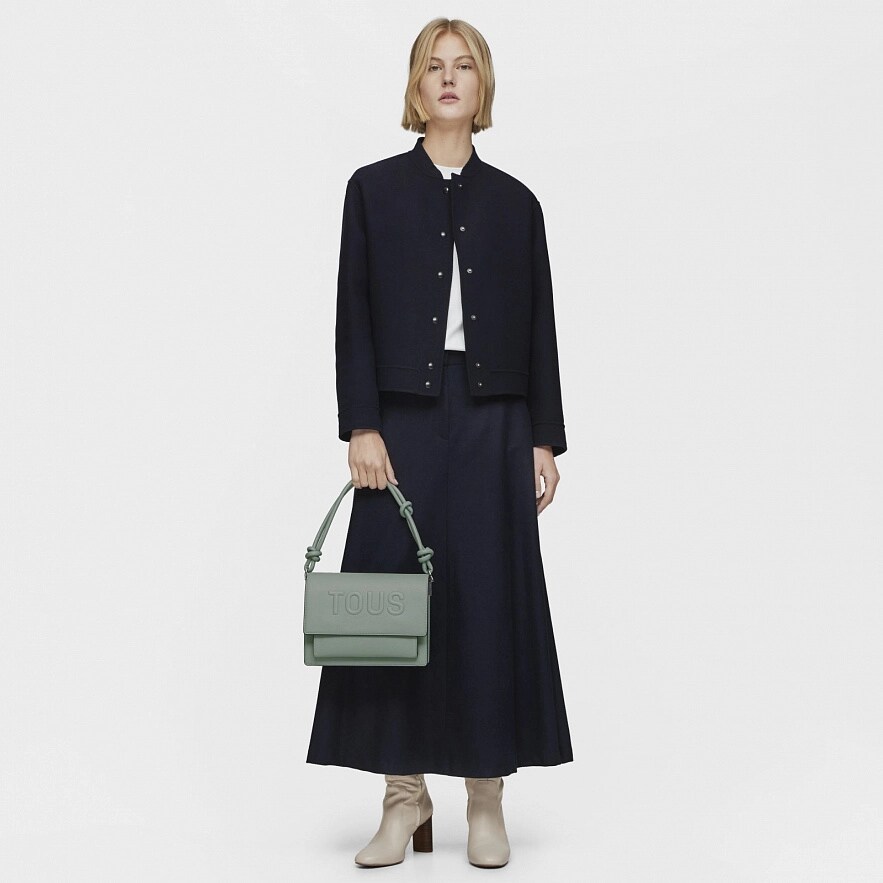 Сумка середнього розміру TOUS La Rue New Audree зі штучної шкіри темно-сірого кольору. Має клапан і застібку на дві магнітні кнопки. Два відділення, розділені одним на блискавці, і відкриту кишеню спереду. Фіксований плечовий ремінь і знімний регульований ремінь через плече. Розміри (висота х ширина х глибина): 18 х 25 х 12,5 см.
