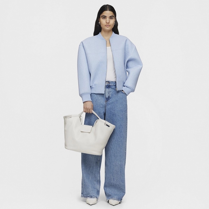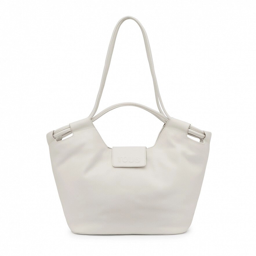 Велика сумка TOUS Sun з білої волов'ячої шкіри з сертифікатом LWG . Застібка на магнітній кнопці. Внутрішня кишеня на блискавці. Фіксовані ручки та плечові ремені. Розміри (висота х ширина х глибина): 27 х 52 х 15 см.