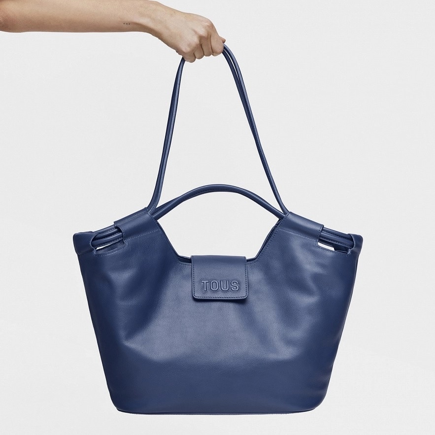 Велика сумка TOUS Sun з темно-синьої волов'ячої шкіри з сертифікатом LWG . Застібка на магнітній кнопці. Внутрішня кишеня на блискавці. Фіксовані ручки та плечові ремені. Розміри (висота х ширина х глибина): 27 х 52 х 15 см.